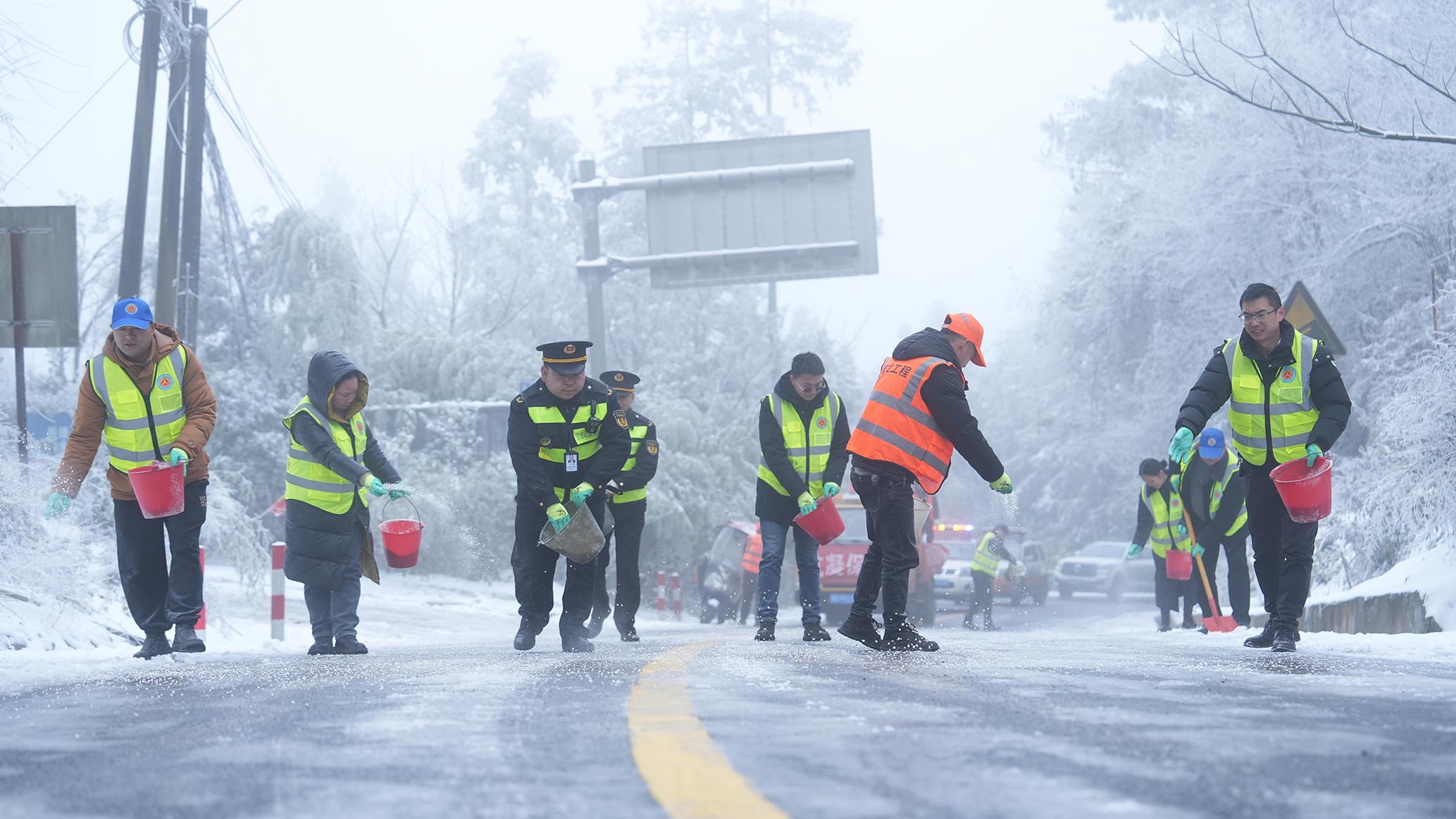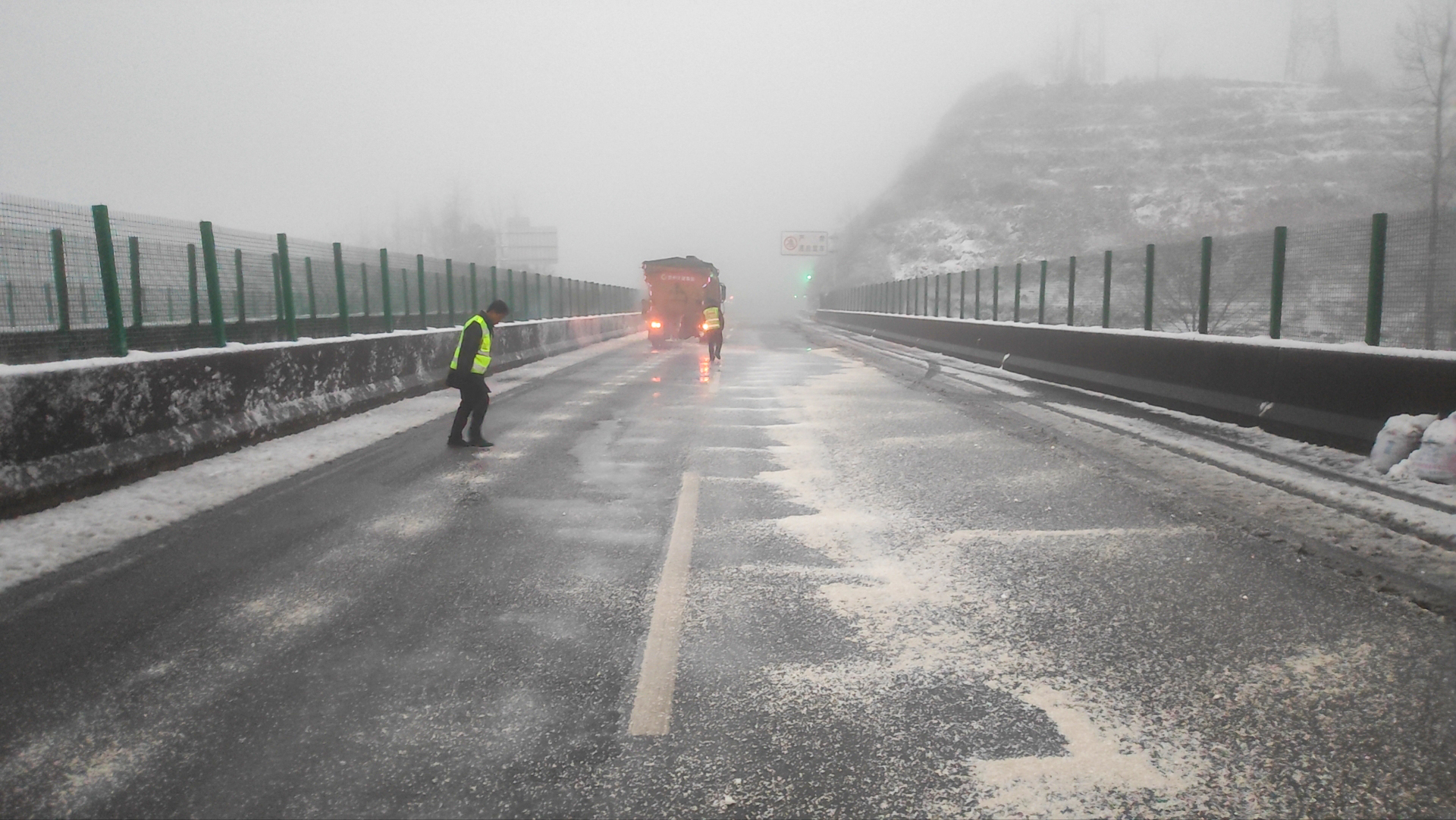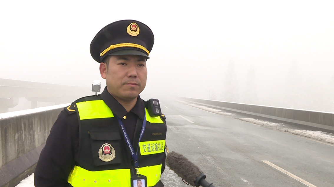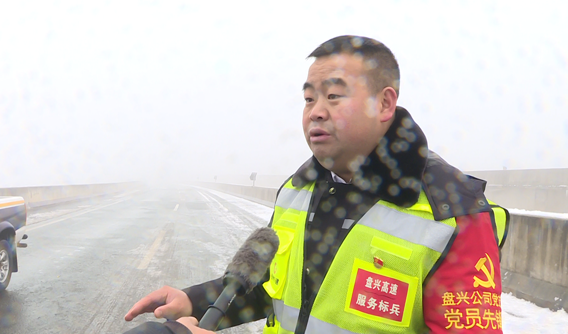 盘兴公司收费稽查部部长服务标兵犹合兴说:“我们是24小时应急值班值守,随时确保道路安全,开展巡查的过程中,发现道路有结冰情况的话,我们会迅速开展一个预防性撒融雪剂,确保最快速度恢复通行,保畅通。”