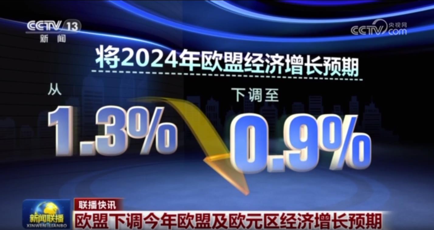 欧盟委员会15日发布冬季经济预测报告,将2024年欧盟经济增长预期从1.3%下调至0.9%,欧元区经济增长预期从1.2%下调至0.8%。
