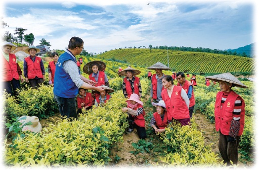 贵州茶叶种植面积位居全国前列,大力推行干净茶生产,茶园全面禁用除草剂。为破解幼龄茶园除草成本高和旱死率高的问题,省茶叶产业技术体系在思南县省级农业科技示范基地开展茶树幼龄茶园套作除草技术示范,其中幼龄茶园套作大豆、紫苏、红薯和豆薯等粮经作物,对杂草的防控效果达80%以上,套种紫苏的亩产值高达3850元,实现幼龄茶园节本增效。
