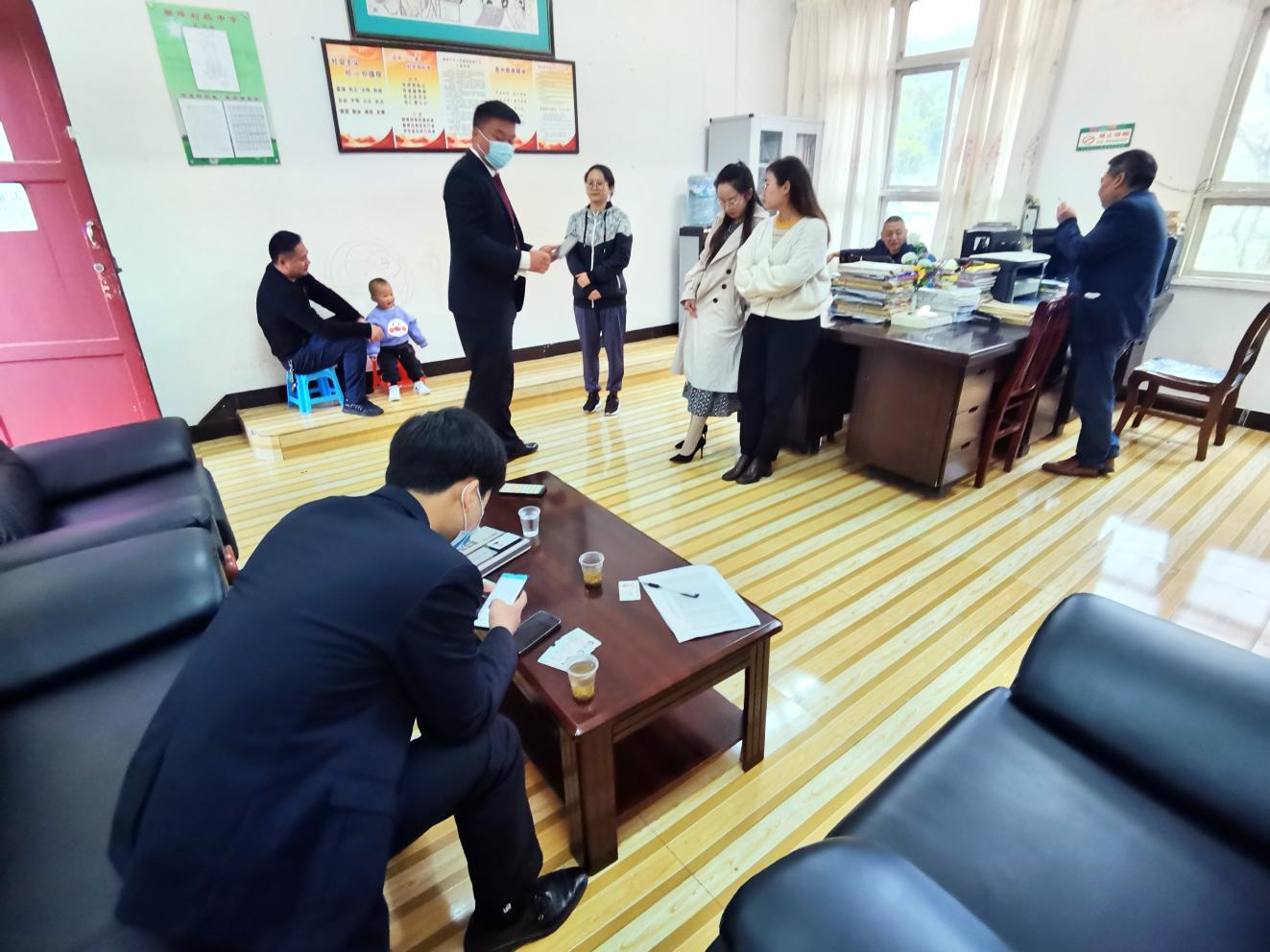 先天下之忧而忧,后天下之乐而乐……”伴随着同学们上午最后一节课朗诵结束,都坪支行一行走出了学校大门。