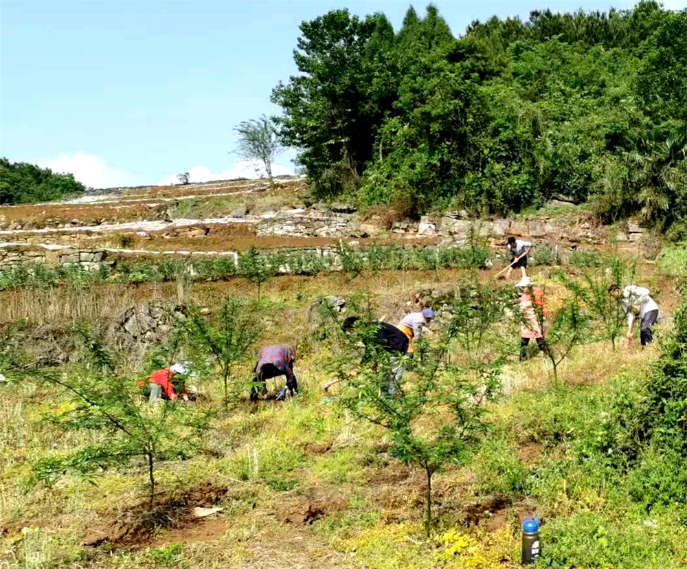 当下,正值南瓜秧移苗栽种时节,在黔西市永燊乡干井村,群众正在花椒产业地里忙着套种南瓜。