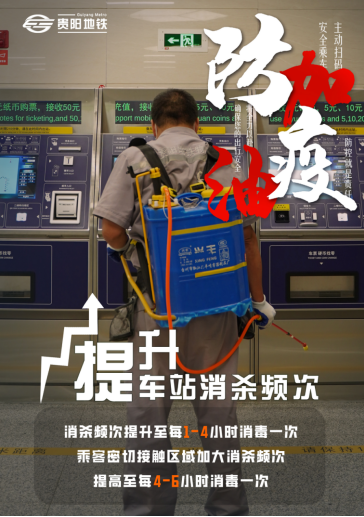 当前,国内疫情防控形势异常复杂、严峻。贵阳地铁为保障市民出行环境安全,严格按照国家、省、市疫情防控工作要求,加强消杀频次和人员防护,持续开展防疫工作。用“8个100%”措施,牢牢筑起疫情防控坚强屏障。