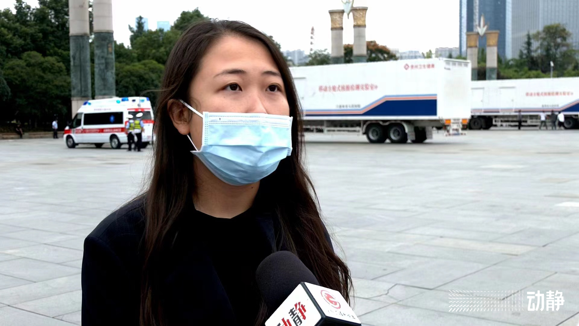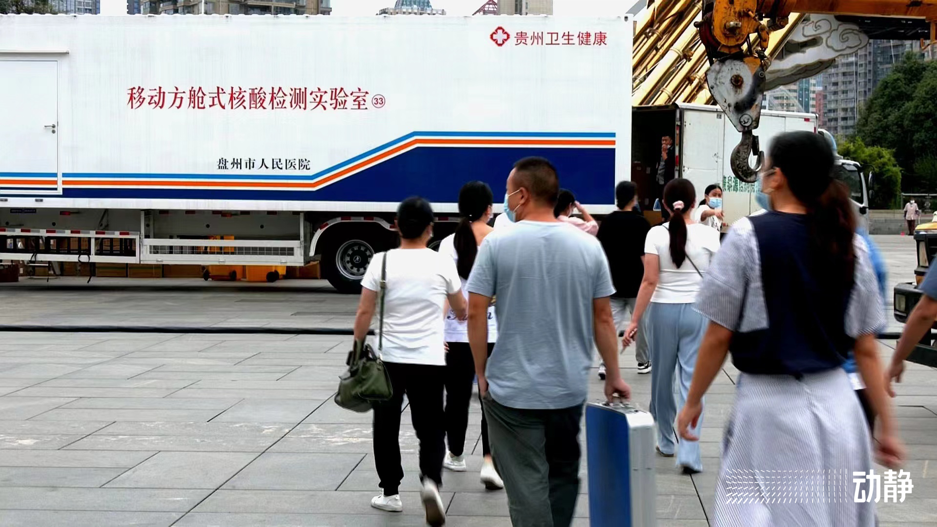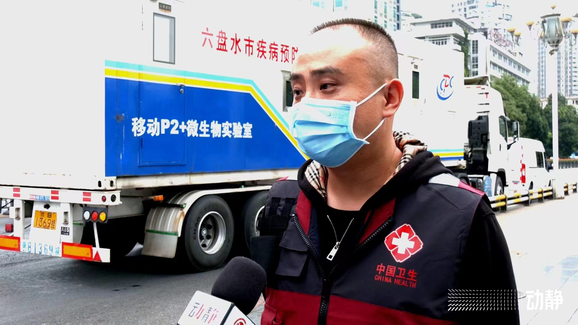 六盘水市方舱实验室领队王月说:“我们是凌晨四点半到的,一共来了700多个工作人员,6辆方舱车,我们分成两个队伍,分别是核酸采集队伍有500多人,方舱检测队伍有100多人,采集工作人员已经在各个点上展开工作。”