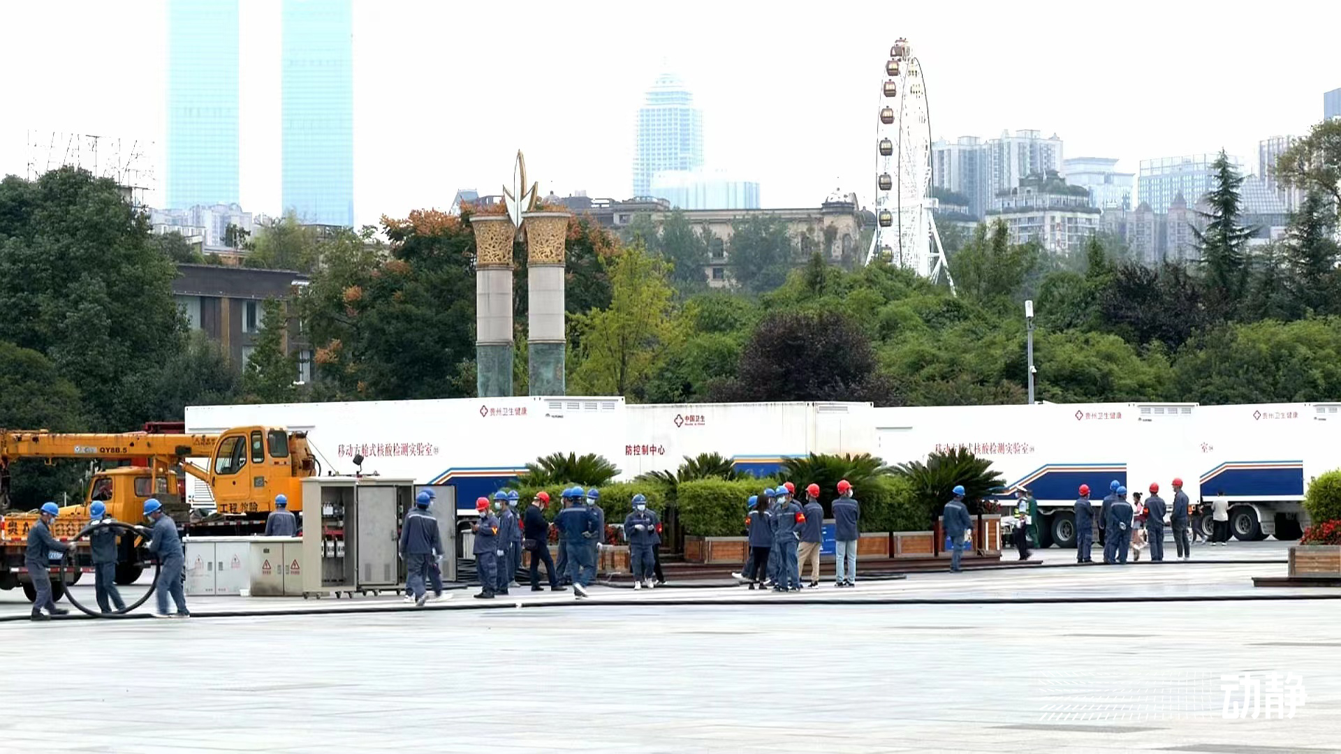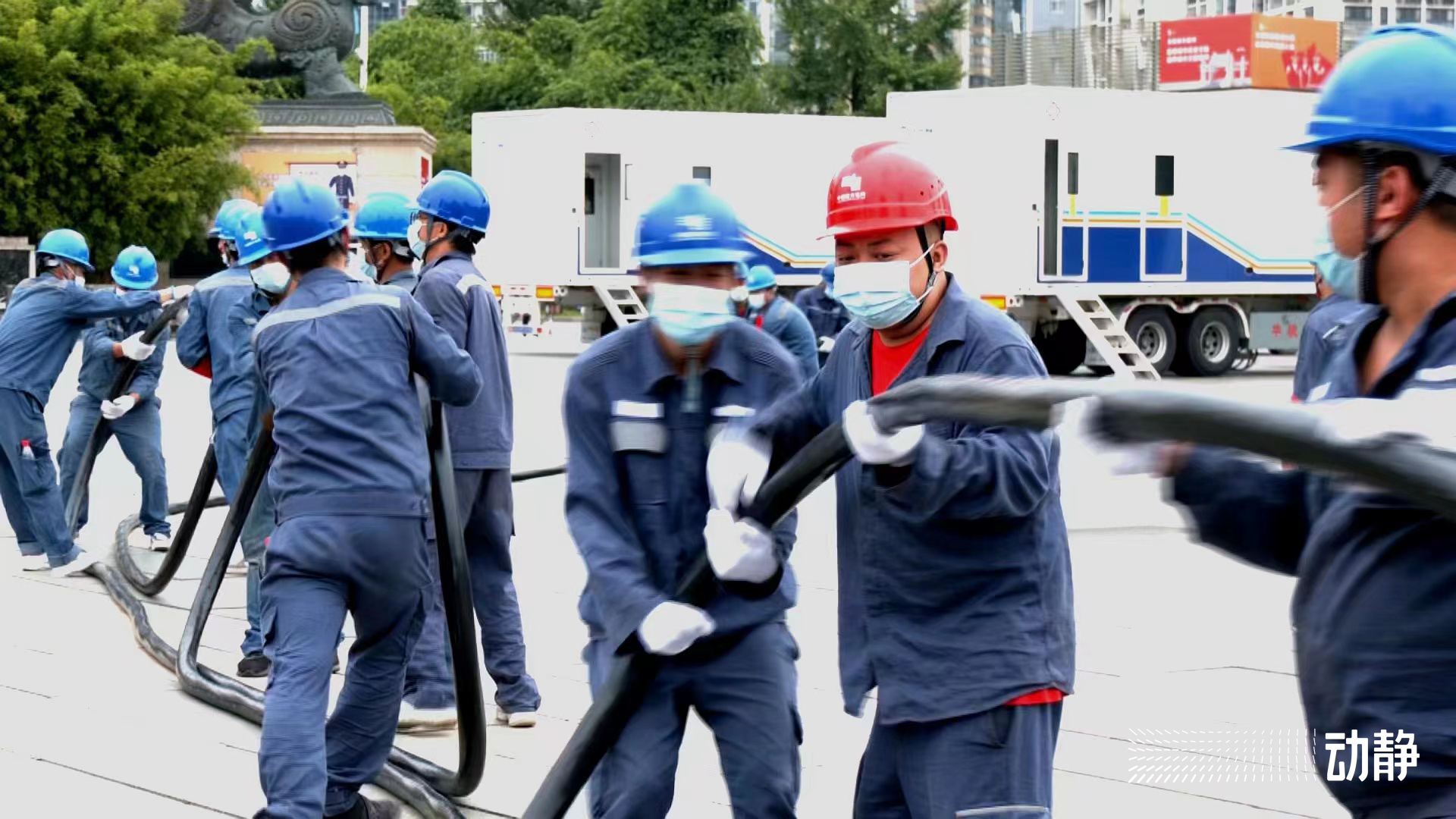 此外,要同时运行十余辆移动方舱式核酸检测车,电力保障是关键。在今天凌晨三点,贵阳市供电局城南分局的工作人员就开始到广场布置供电线路,为现场的移动方舱式核酸检测车提供电力保障。