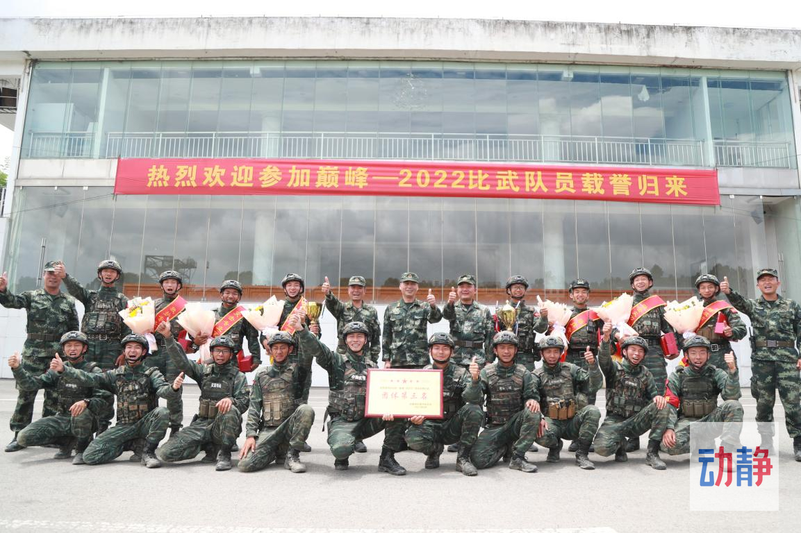 “咚咚锵!咚咚锵……”武警贵阳支队机动大队全体官兵列队在营区欢迎参加武警贵州总队“巅峰-2022”特战侦察比武的“勇士”们载誉而归。