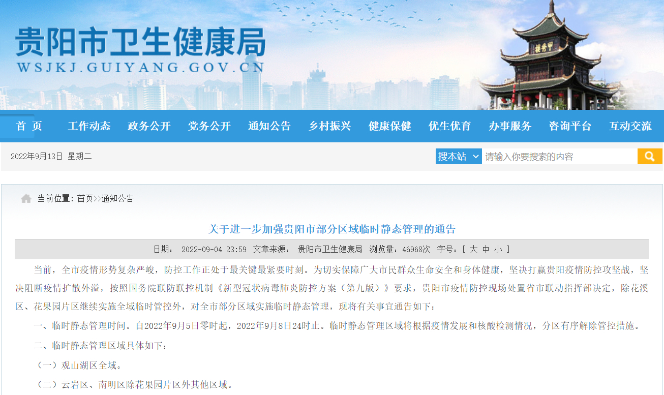 据贵阳市卫生健康局发布的通告,2022年9月16日至18日在贵阳贵安开展连续3轮全域核酸检测,尽快实现风险人员早发现、早管控。