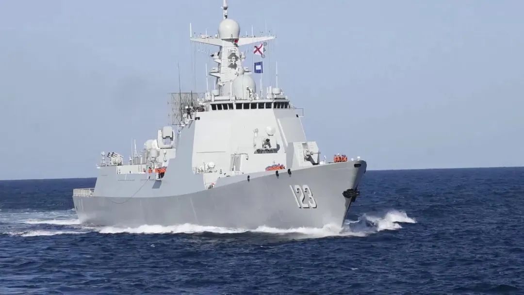 淮南舰,舷号123,是我国自主研究设计建造的新型导弹驱逐舰。该舰2021年1月入列,满载排水量7000余吨,具有一定的对海、对空、对岸、反潜等作战能力,主要担负编队协同攻击敌大中型舰艇、编队反潜作战、编队协同防空和海上巡逻、警戒、护航、驱护舰编队指挥等任务。