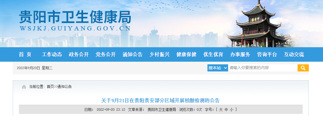 根据贵阳贵安当前疫情防控形势,经贵阳市疫情防控现场处置省市联动指挥部研究,决定于2022年9月21日在贵阳贵安部分区域开展核酸检测。现将有关事宜通告如下: