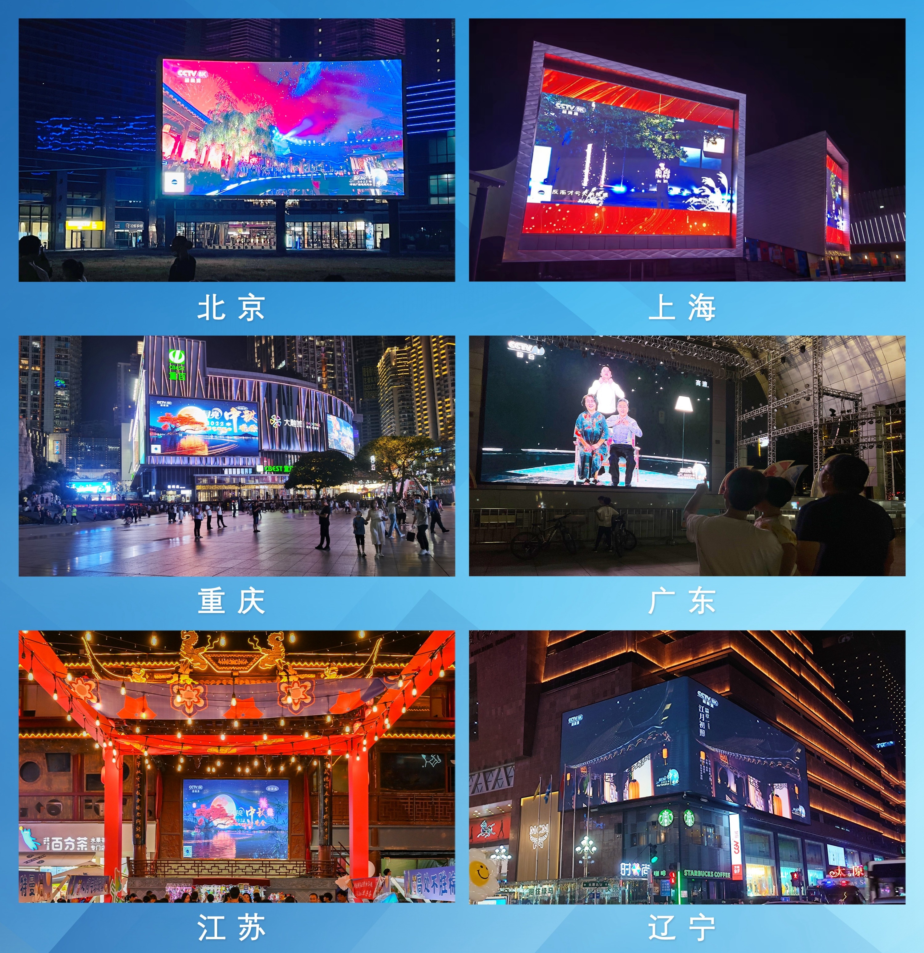 今年总台秋晚还首次采用8K超高清技术和三维菁彩声技术制作播出,并首次通过“百城千屏”超高清公共大屏传播体系播出。中秋夜,不少观众在全国70个城市的270余块户外地标大屏上看同步观看8K秋晚画面,并通过“云听”客户端收听到与视频同步的三维菁彩声晚会电视伴音,大呼“很有意思,视听效果震撼”“在户外看秋晚感受独特”。