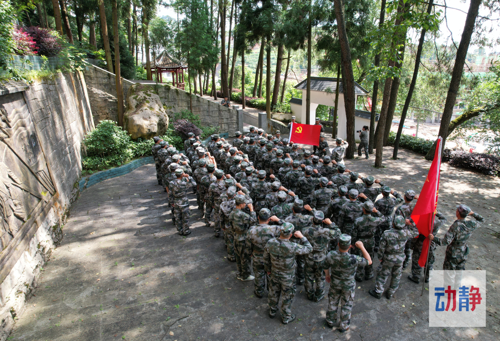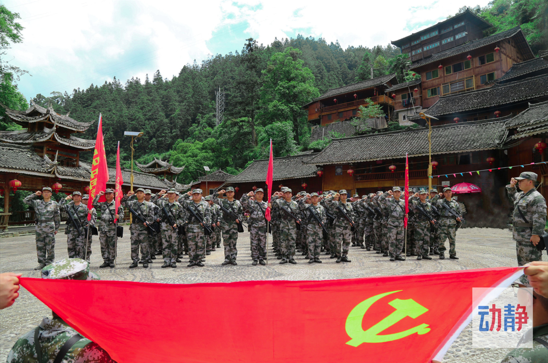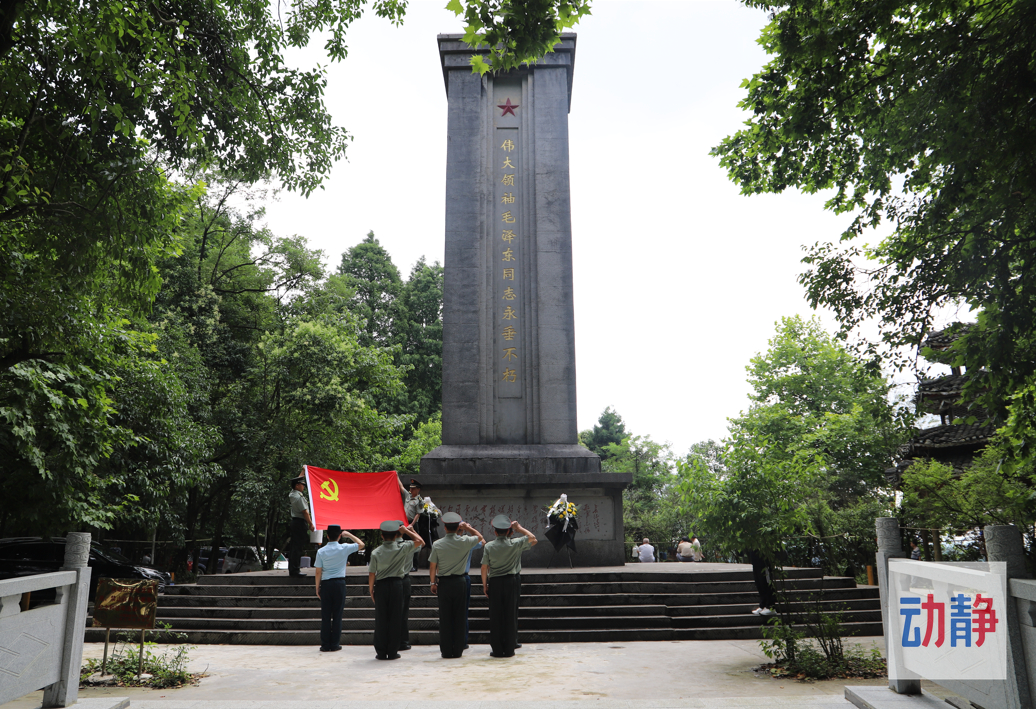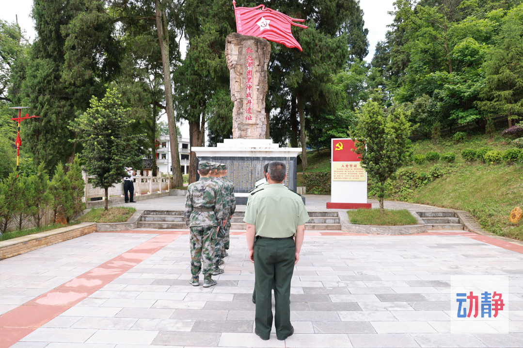 在施秉,县人武部组织全体党员来到红六军团“黑冲”战斗遗址现场,举行新党员入党宣誓活动。