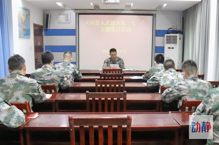 在天柱,县人武部组织全体党员开展入党宣誓、佩戴党徽胸标、诵读《中国共产党章程》、观看电影《建党伟业》等形式多样的主题党日活动。