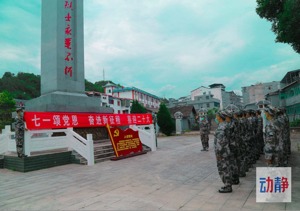 在台江,县人武部组织党员干部职工、民兵党员代表开展“七一颂党恩·喜迎二十大”主题党日活动,重温入党誓词。