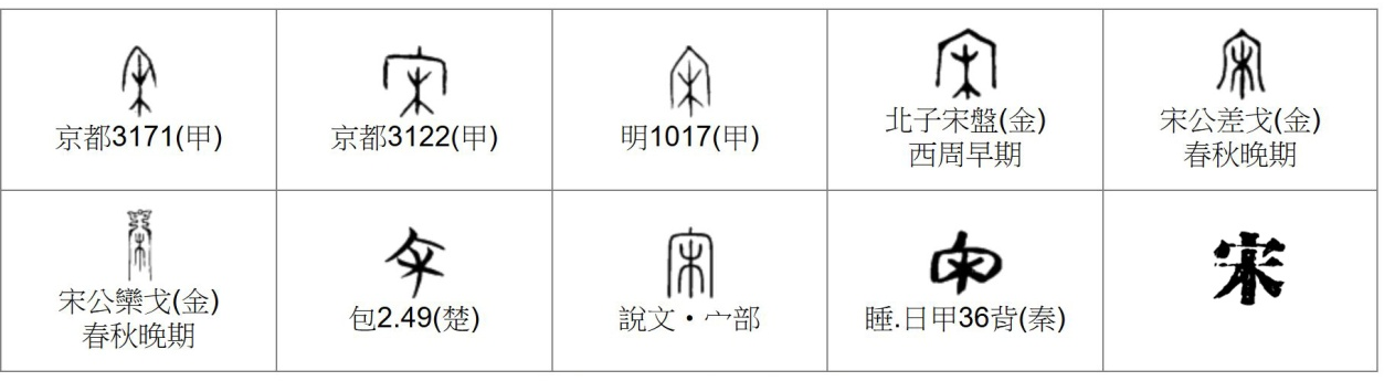 另据古商城(今郑州)考古发现的商代住宅考证,出土面积最大的房屋为16.2米X7.6米。在这个大房子附近,还有一些地穴式的小房子。而这种既有高大的“宋”字形的房子,又有“穴”式小房子的明显差别,则说明当时已存在住房差别,甚至是阶级差别。由此可见,“宋”应该属于高级住宅。