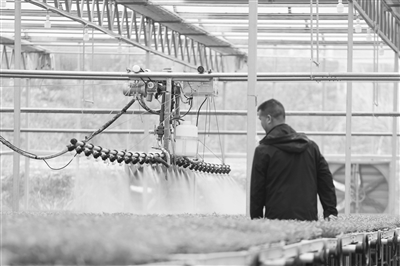 2月28日,在贵州省榕江县车江坝区智慧育苗中心内,当地农民运用水稻钵体育秧机、水肥一体自动喷淋机、多功能育苗大棚等机械化、智能化设备进行育秧育苗生产,有效提高了劳动效率和种苗质量,助力春耕生产。