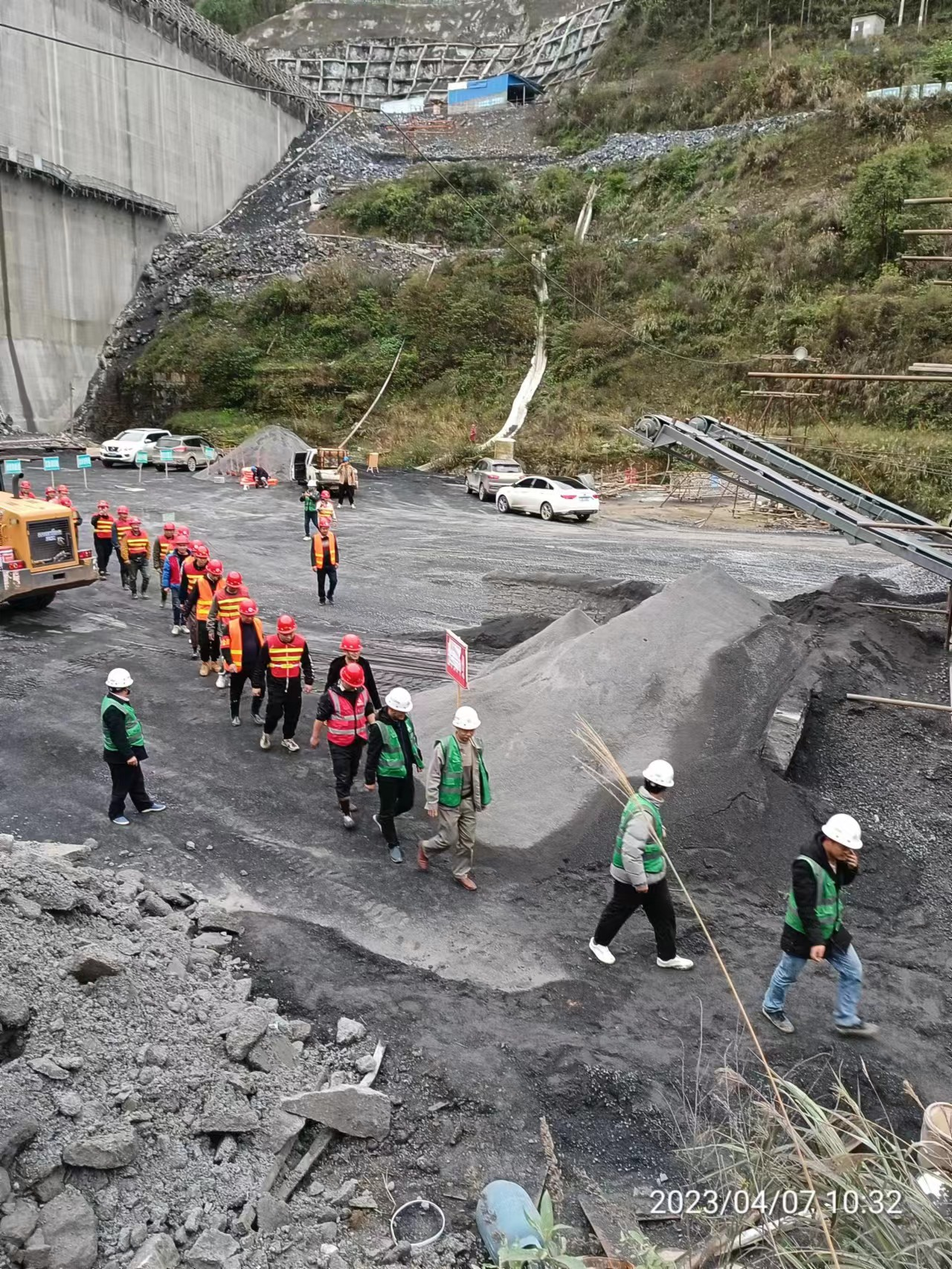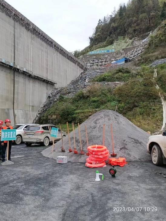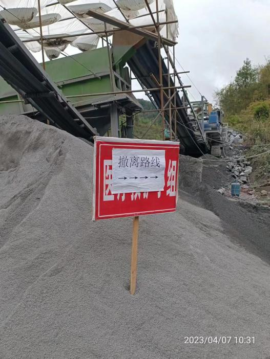 演练场景模拟2023年4月7日水库上游地区有暴雨,本次洪水可能超过上游围堰830.00m高程,有可能对正在上游围堰进行砂石加工作业施工的人员安全,须在30分钟时间内,对作业人员5人、挖机1台、铲车1台、自卸汽车2台完成紧急转移撤离任务。