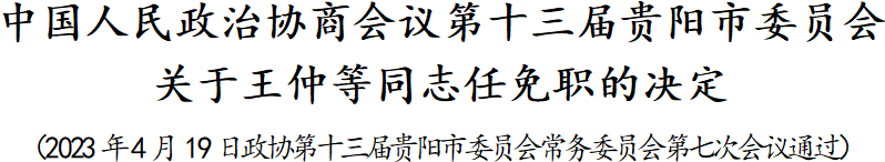 王仲同志任政协第十三届贵阳市委员会经济科技委员会专职副主任;