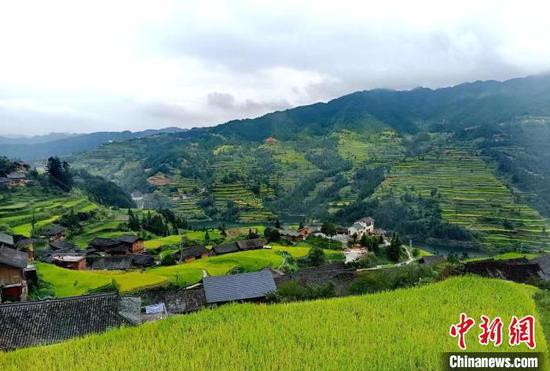 贵州省雷山县丹江镇的白岩村,紧挨着雷公山国家森林公园,是一个梯田上的苗族传统村落。刚下车,张以沫就被这个群山环绕的村落所吸引,远远望去,秋日的梯田披上一层黄灿灿的外衣,一阵微风拂过,空气中弥散着阵阵稻香。