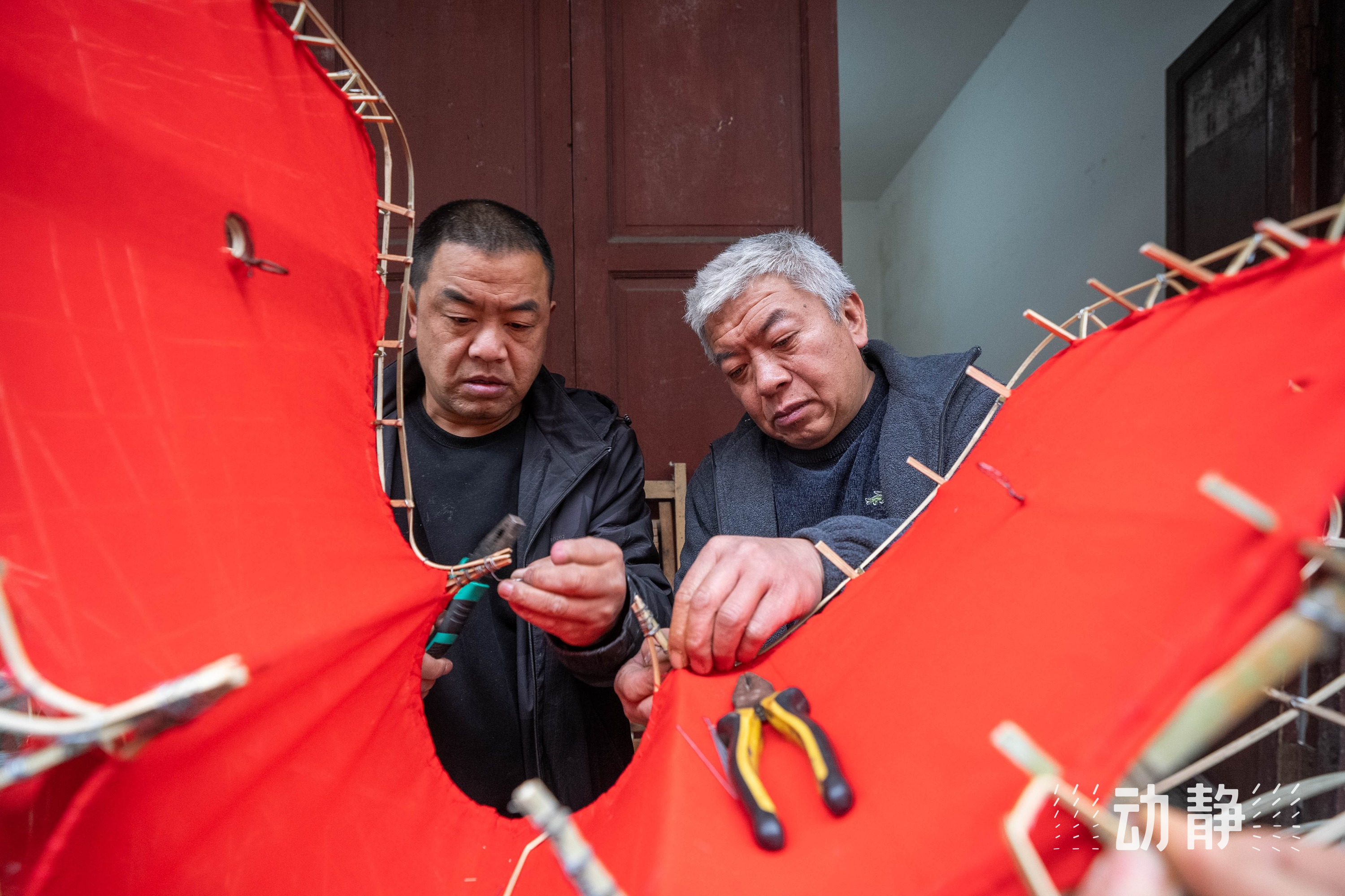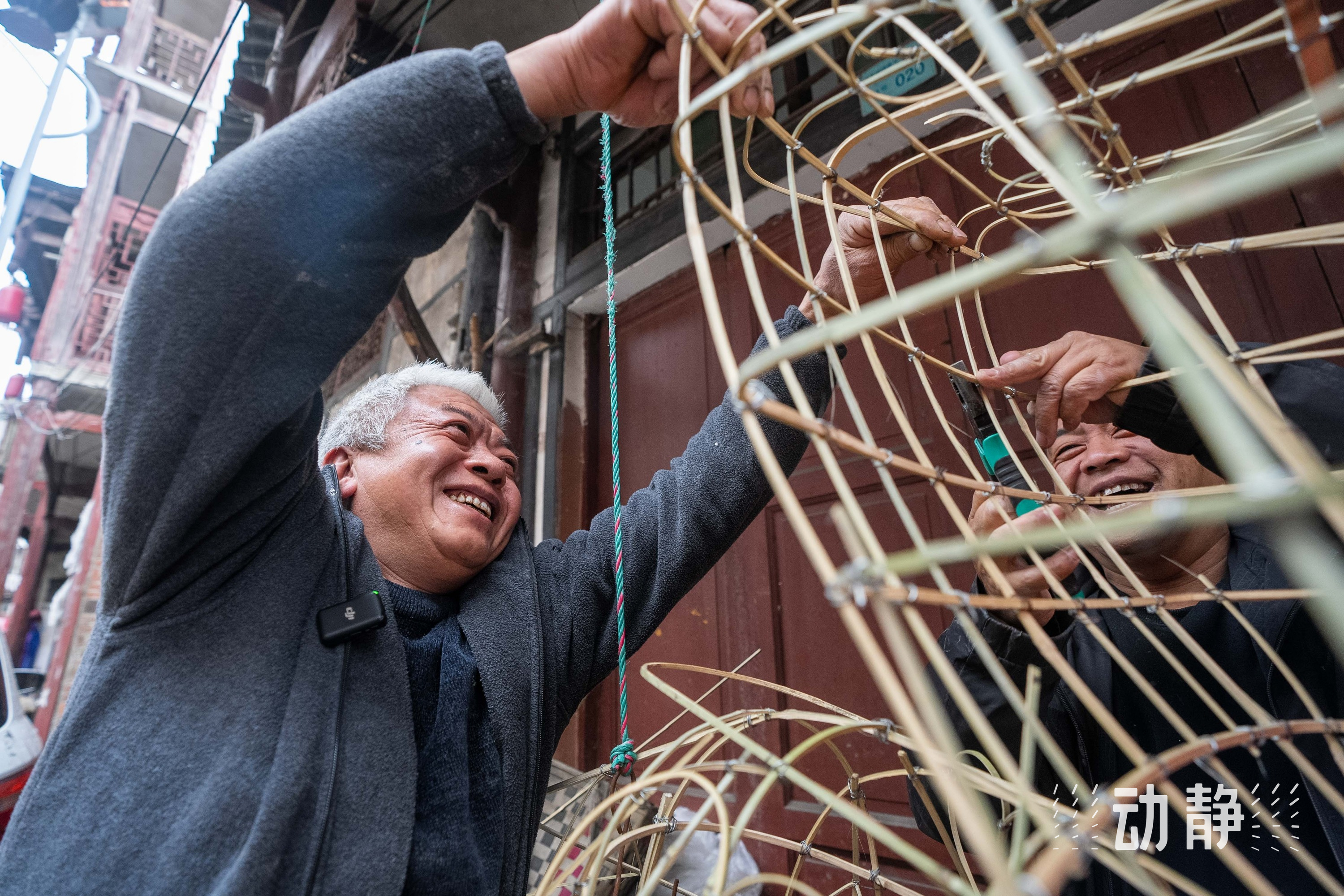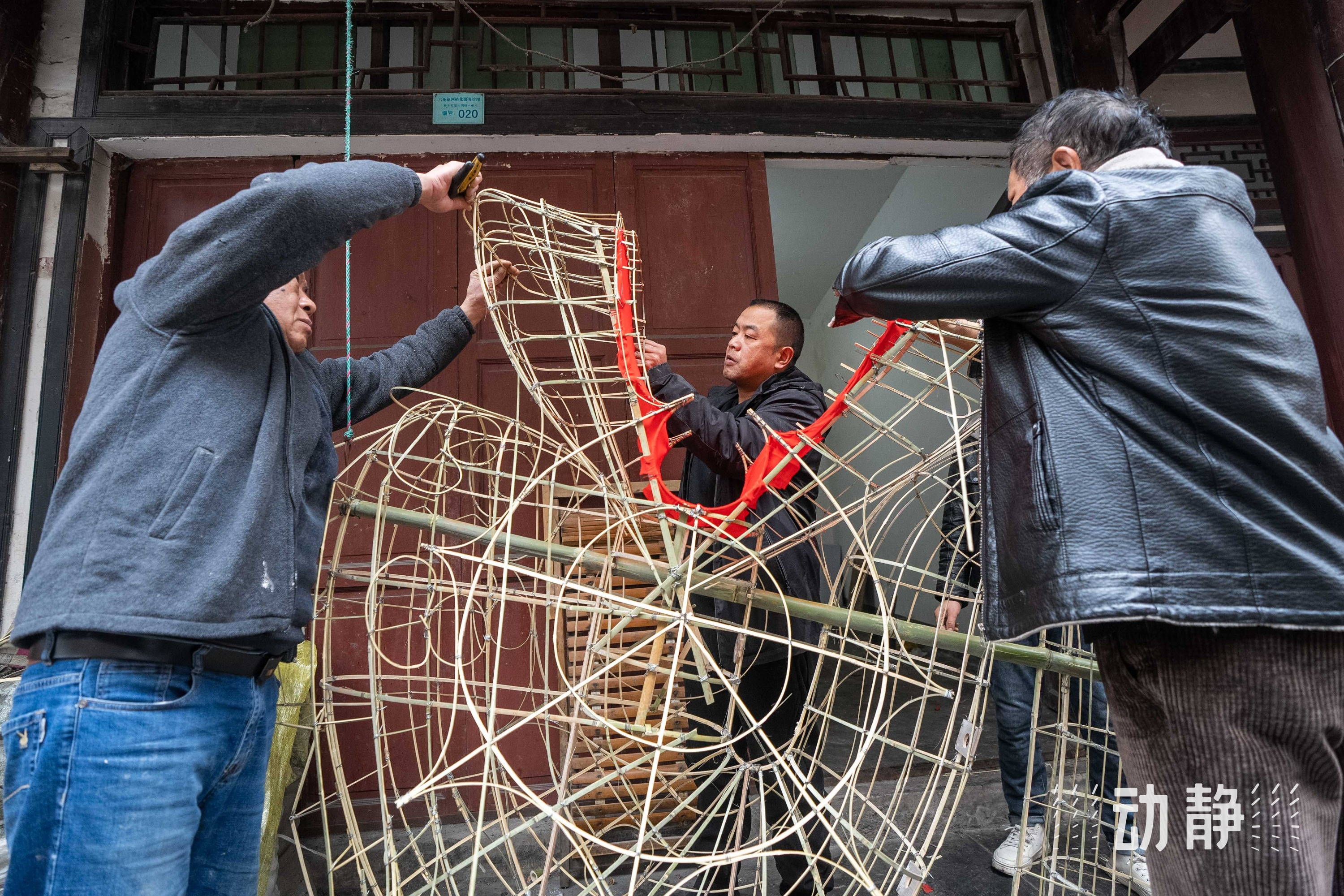 据了解,一条传统竹龙从选料、破竹、编织、糊纸、上色一直到组装需要400多道工序,制作周期长达2月之久。包全介绍,编织好的竹龙也需要磨合,在舞龙前,他都要先进行关键的“驯龙”环节,将点燃的火烛放在竹龙各关键点,高温使竹龙的各部分贴合得更好,让舞龙人更加得心应手。