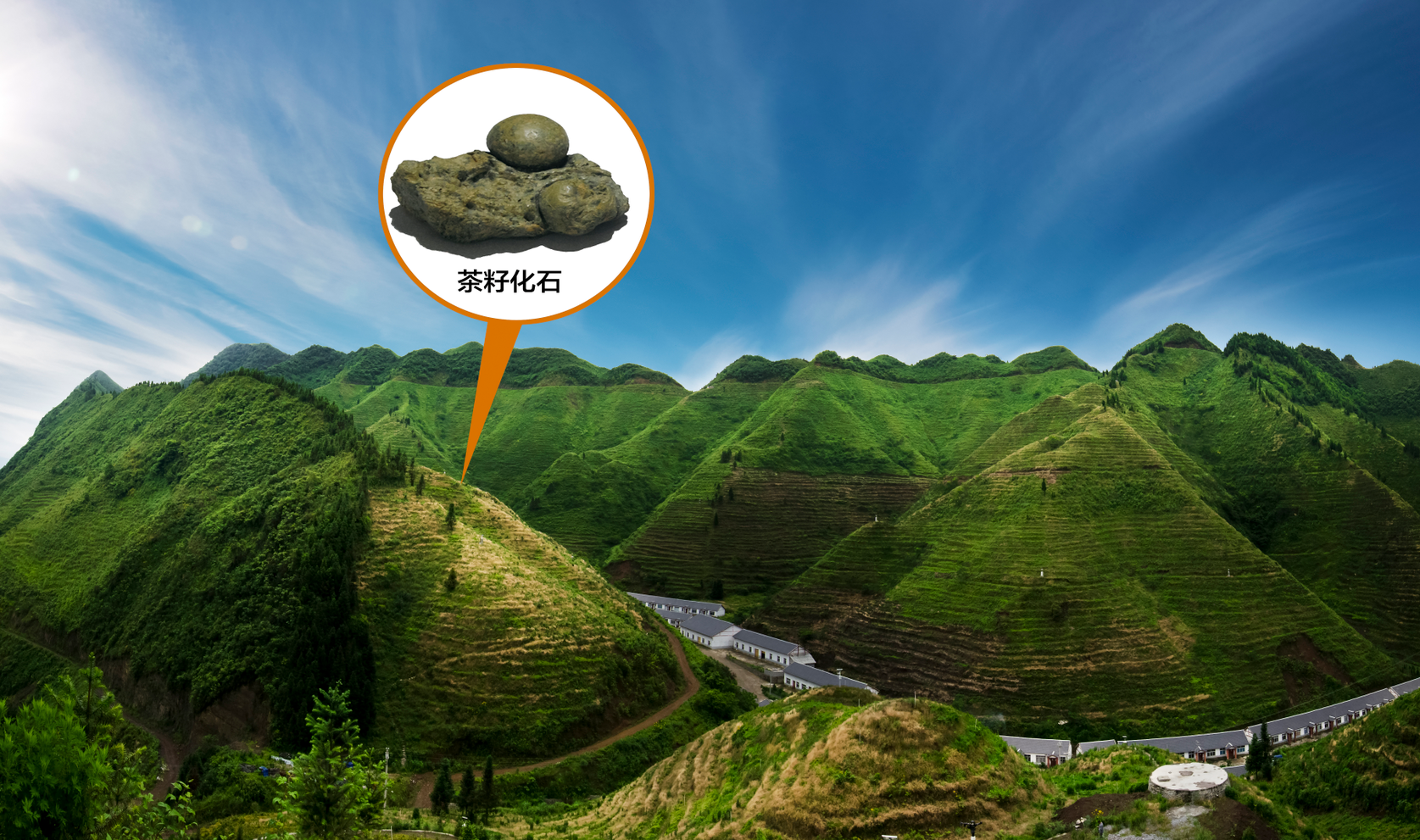 1980年,在黔西南州普安县和晴隆县交界处的云头大山,专家们发现了一颗古茶籽化石,经中科院南京地质古生物研究所鉴定,距今至少164万年,是全世界迄今为止唯一的古茶籽化石。目前,普安县境内繁衍着2万多株野生四球古茶树,其中千年以上的有3000多株。