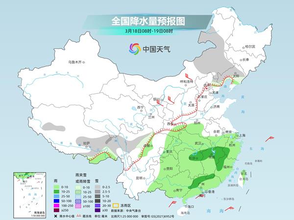 降雨方面,3月13日开始,南方多地阴雨频繁。昨天大范围阴雨天气仍在持续,像是四川东北部、湖北西部和东南部、湖南北部、江西北部、浙江南部、福建西北部等地部分地区出现中雨或大雨。