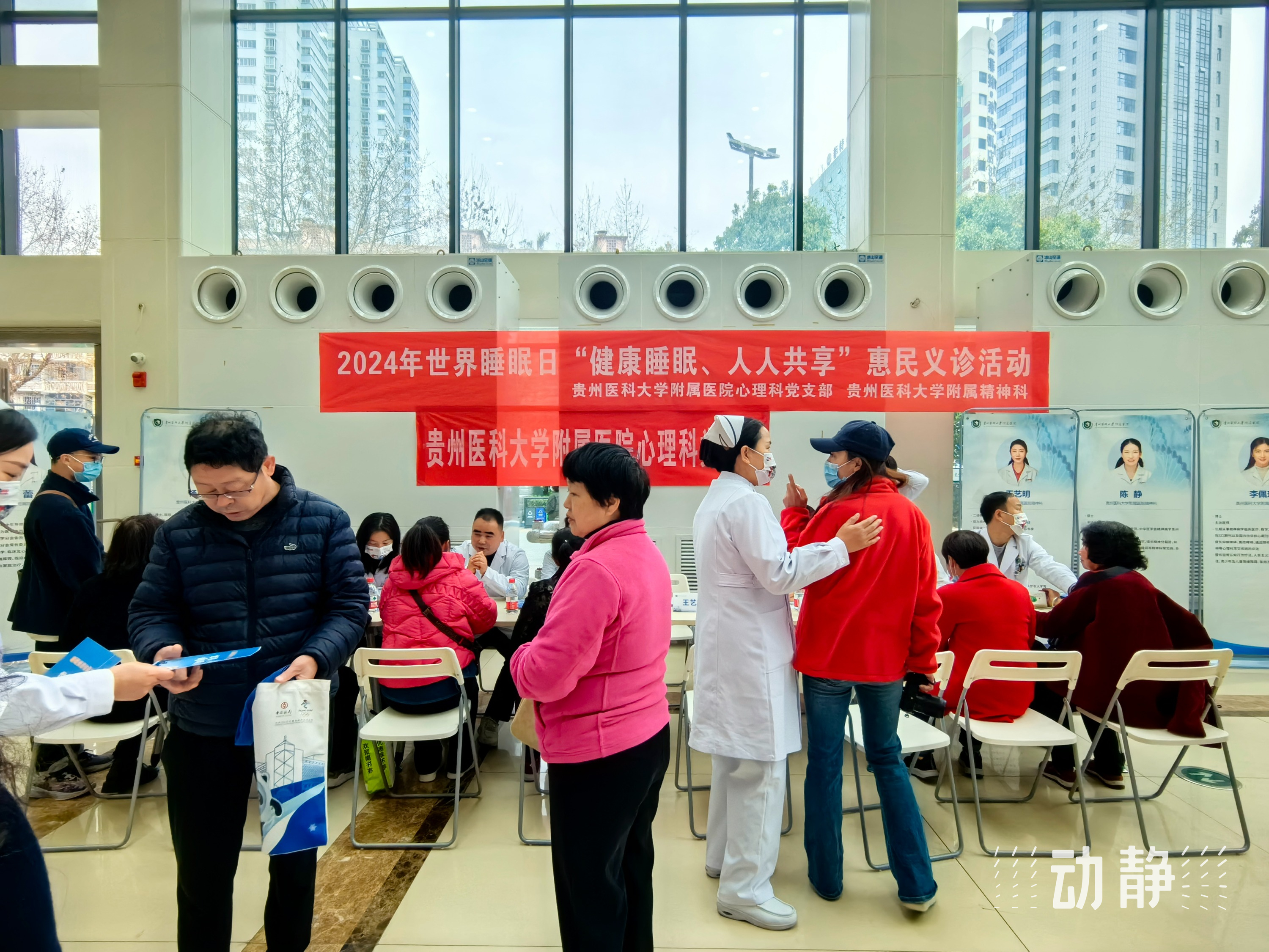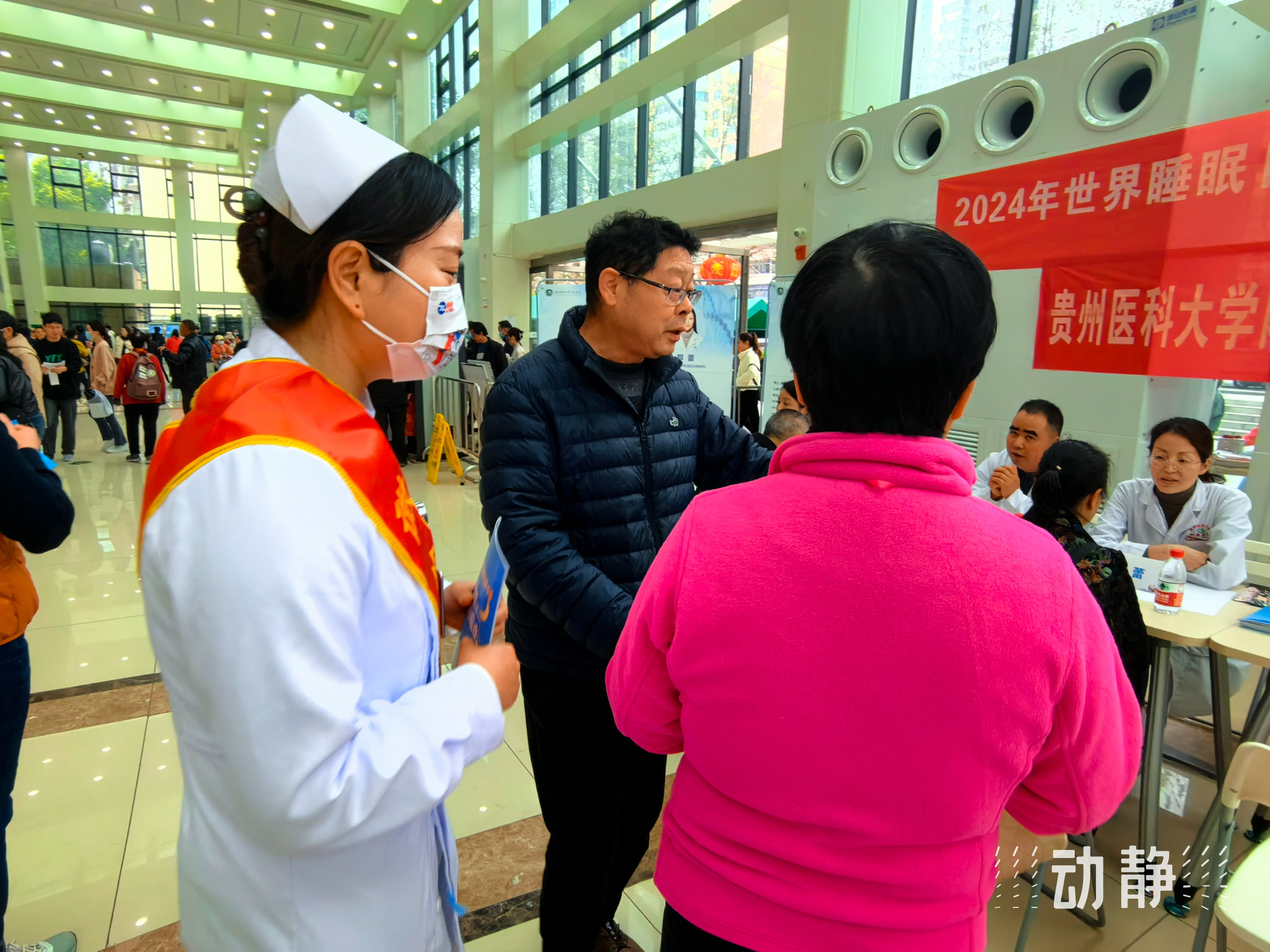 今天是世界睡眠日,贵州医科大学附属医院精神科在门诊大厅举行义诊活动,帮助市民了解睡眠障碍的成因、预防及治疗方法,以及如何规范使用安眠药和褪黑素类睡眠辅助保健品,提升公众对睡眠健康重要性的认识。