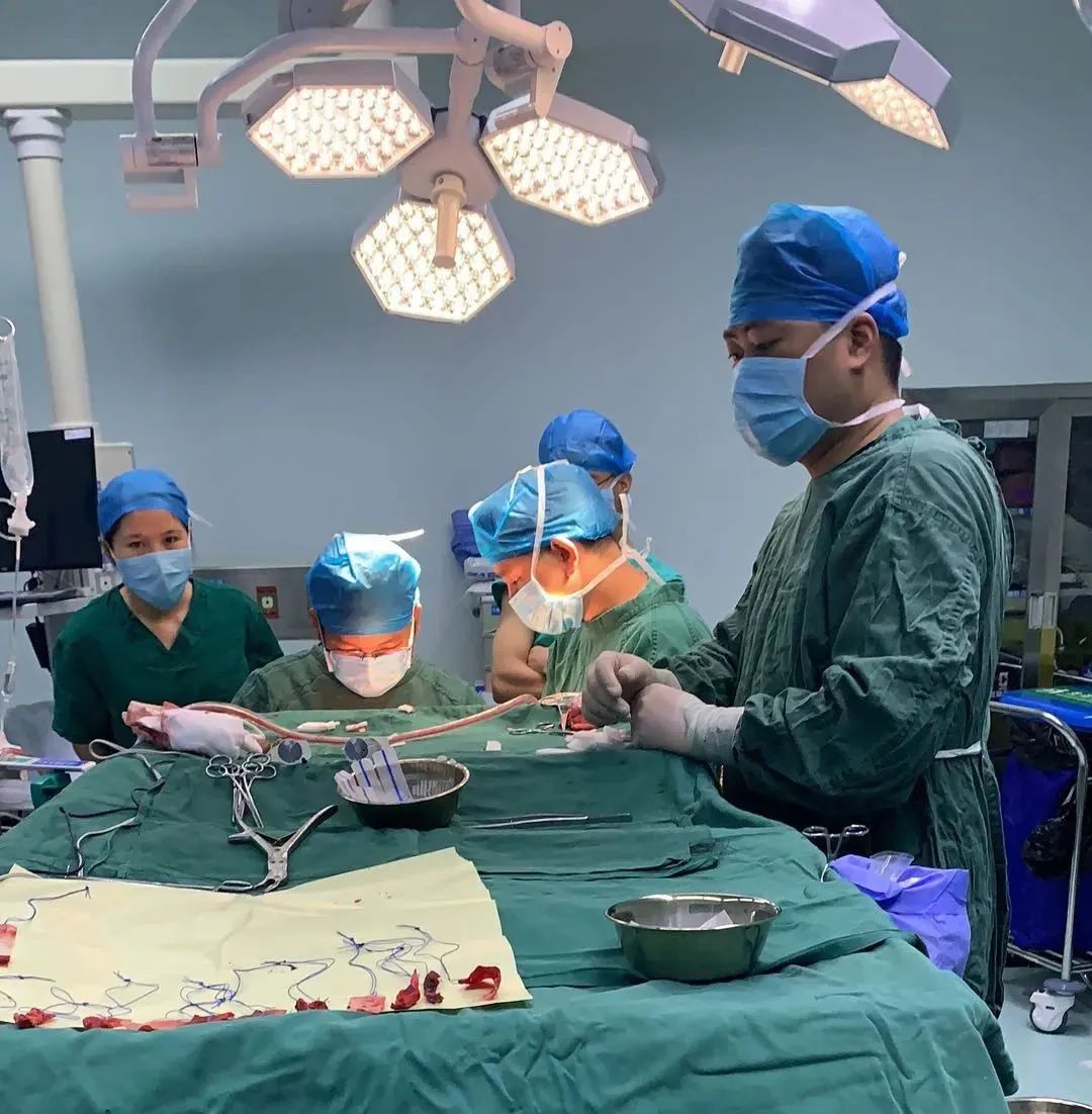 大家分析了患儿的情况后,决定为其抗休克、急诊剖腹探查止血,2小时30分后由肝胆外科吴田方医生主刀的腹腔脾切除、肝脏修补、积血清除术高效顺利完成!