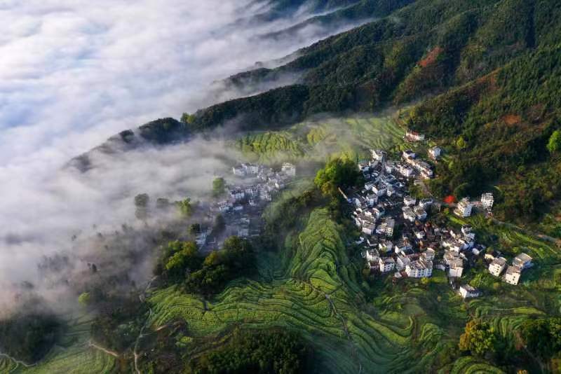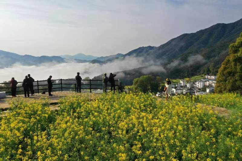 草长莺飞四月天,在高低起伏的山间金黄的油菜花仍然处于盛花期,层层叠叠的梯田被一片金黄覆盖,万亩花海成了春日里最靓丽的景色。