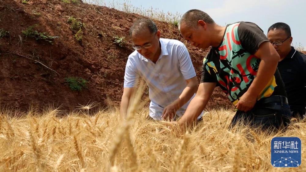 潼南区新胜镇圆通村支部书记游希家说,以前他们这片土地是片撂荒地,今年通过集体经济和村支两委的带动种上了小麦,获得了大丰收。
