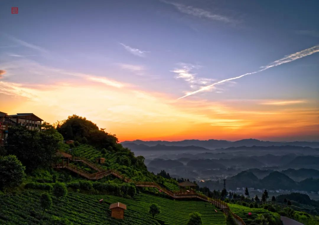 云贵山紧依遵义市湄潭县城,与贵州北纬27℃茶山相连成片,是湄潭翠芽的核心产区,在这里,茶树遍野。
