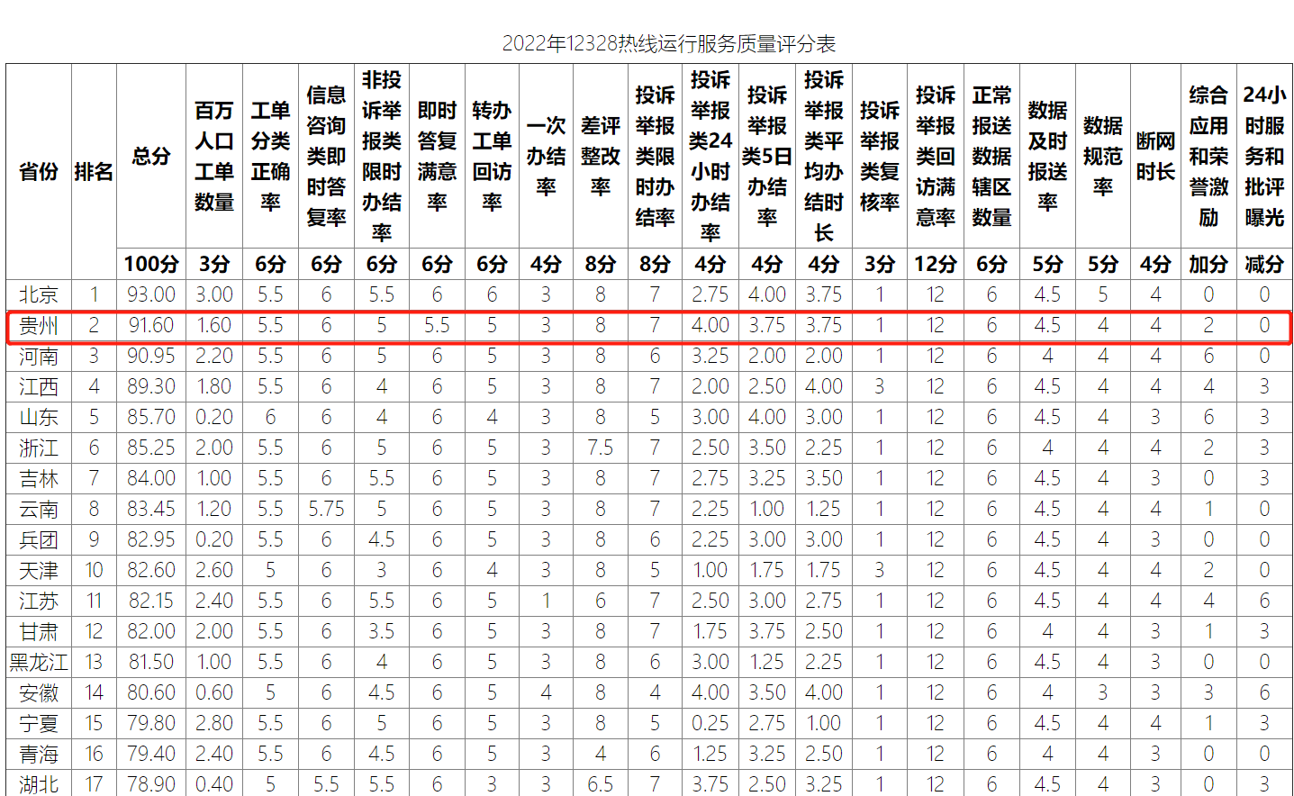 3月15日,交通运输部公布了《12328交通运输服务监督热线2022年度运行服务质量考评结果》,贵州省12328交通运输服务监督热线取得第二名的成绩。