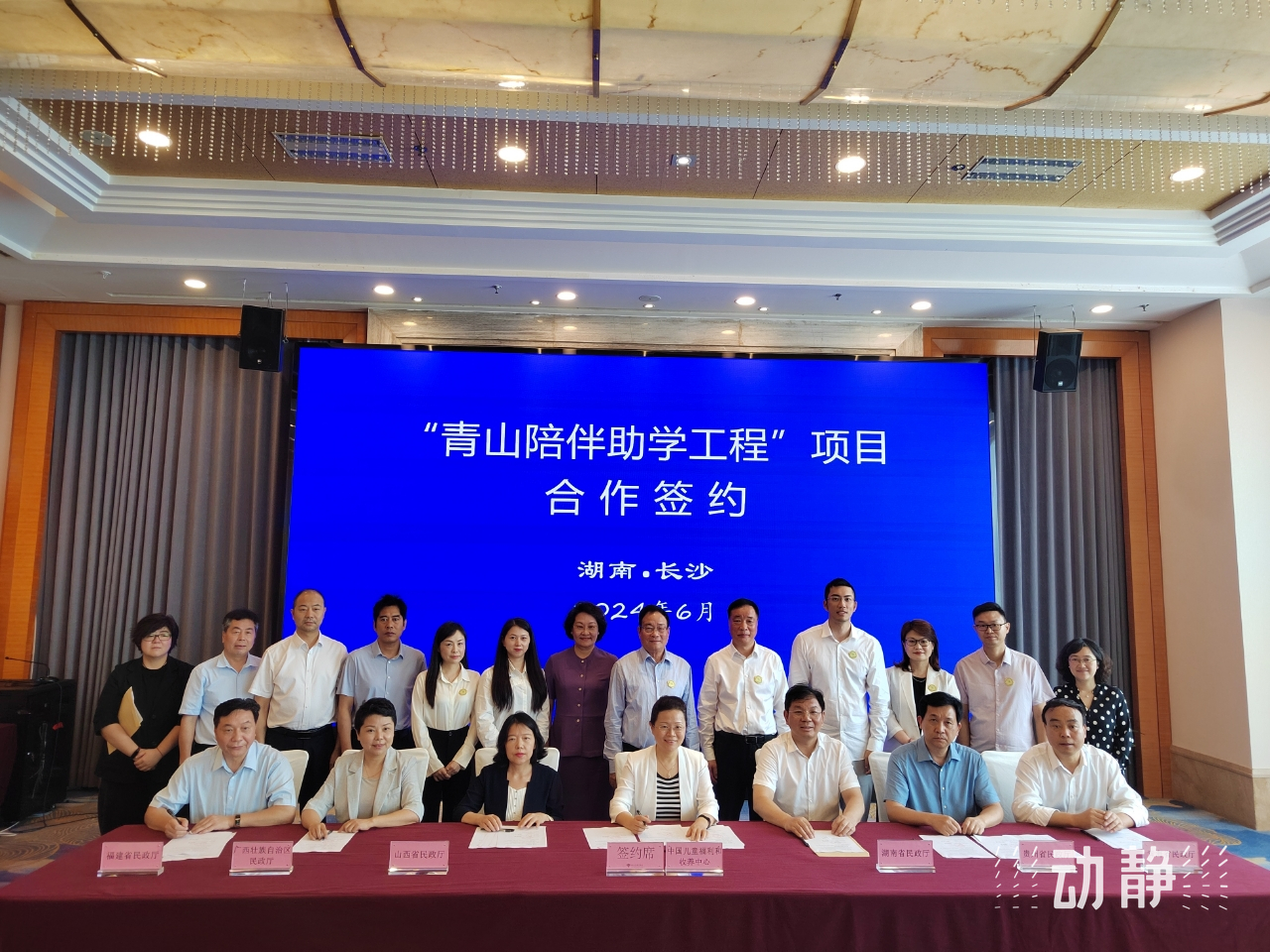 6月20日,“青山陪伴助学工程”项目启动研讨会在长沙举办,中国儿童福利和收养中心与贵州、山西、福建、湖南、广西、青海六省(自治区)民政厅分别签署“青山陪伴·事实无人抚养儿童助学工程”项目合作协议。