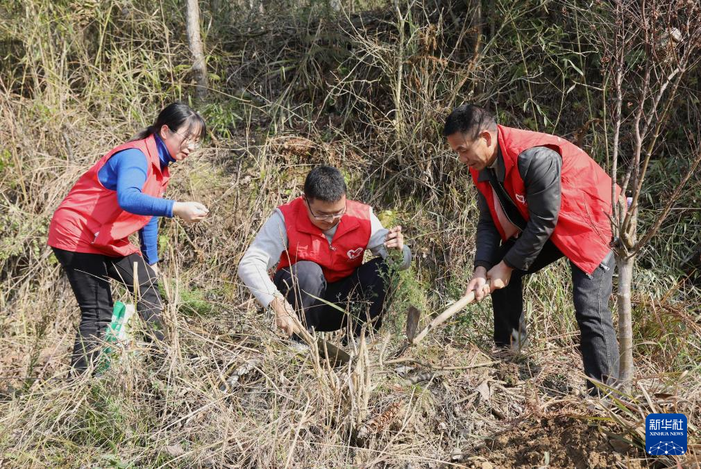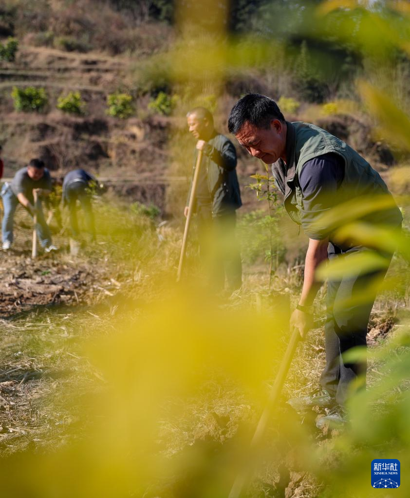 2月18日,人们在贵州省贵阳市开阳县云开街道温泉村植树。新华社发(袁福洪 摄)