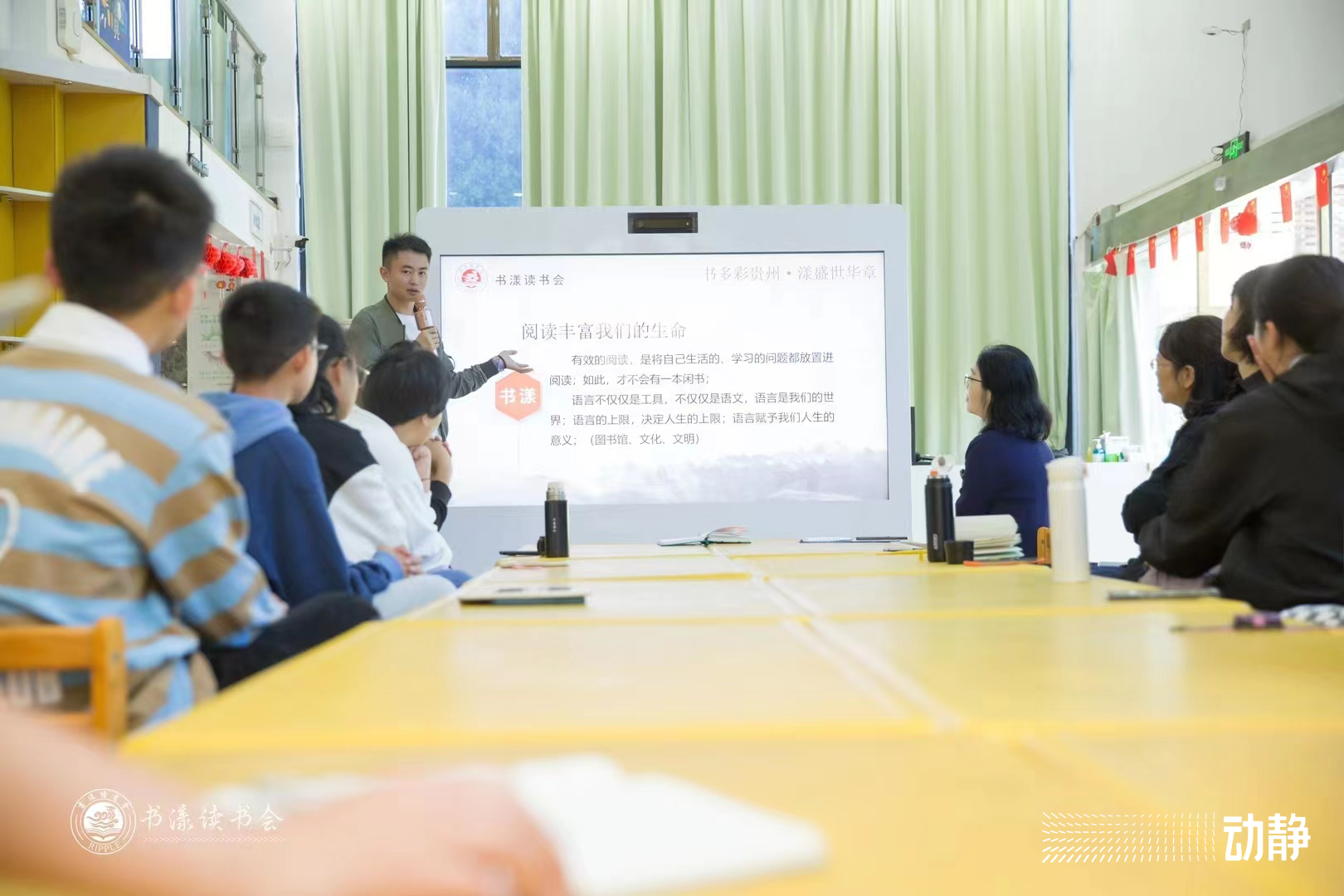 贵州省书漾读书会创始人、作家张婷女士从四个方面,为参会的家长和孩子们介绍了书漾读书会。其一,书漾读书会于2016年创立,2018年正式定名,2022年成为中国作协重点扶持项目。七年做了200多场读书活动,有会员近2万人,得到社会各界的广泛认可。其二,目前书漾的专家顾问有以“时代楷模”陈立群为代表的六十多位大咖,他们引领着书漾走向更深更广的阅读天地。其三,知行合一,书漾7年来,先后做了以警察、教师、禁毒等不同主题的活动200多场,开展了“好书伴青春,书香满校园”活动,携手“往西公益”为全省5000名热爱阅读的高中生赠送了5000本丰富多样的文学类书籍。其四,书漾读书会将以“重阅读、崇分享、尚思辨”为宗旨,扎根贵州,读好贵州故事,讲好贵州故事,漾起这片土地的盛世华章。