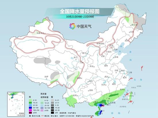今天(10月21日),华南一带降雨范围将进一步缩减,强降雨将主要集中在海南地区。此外,随着冷空气影响进入尾声,今天开始,全国大部地区的气温将明显回升。