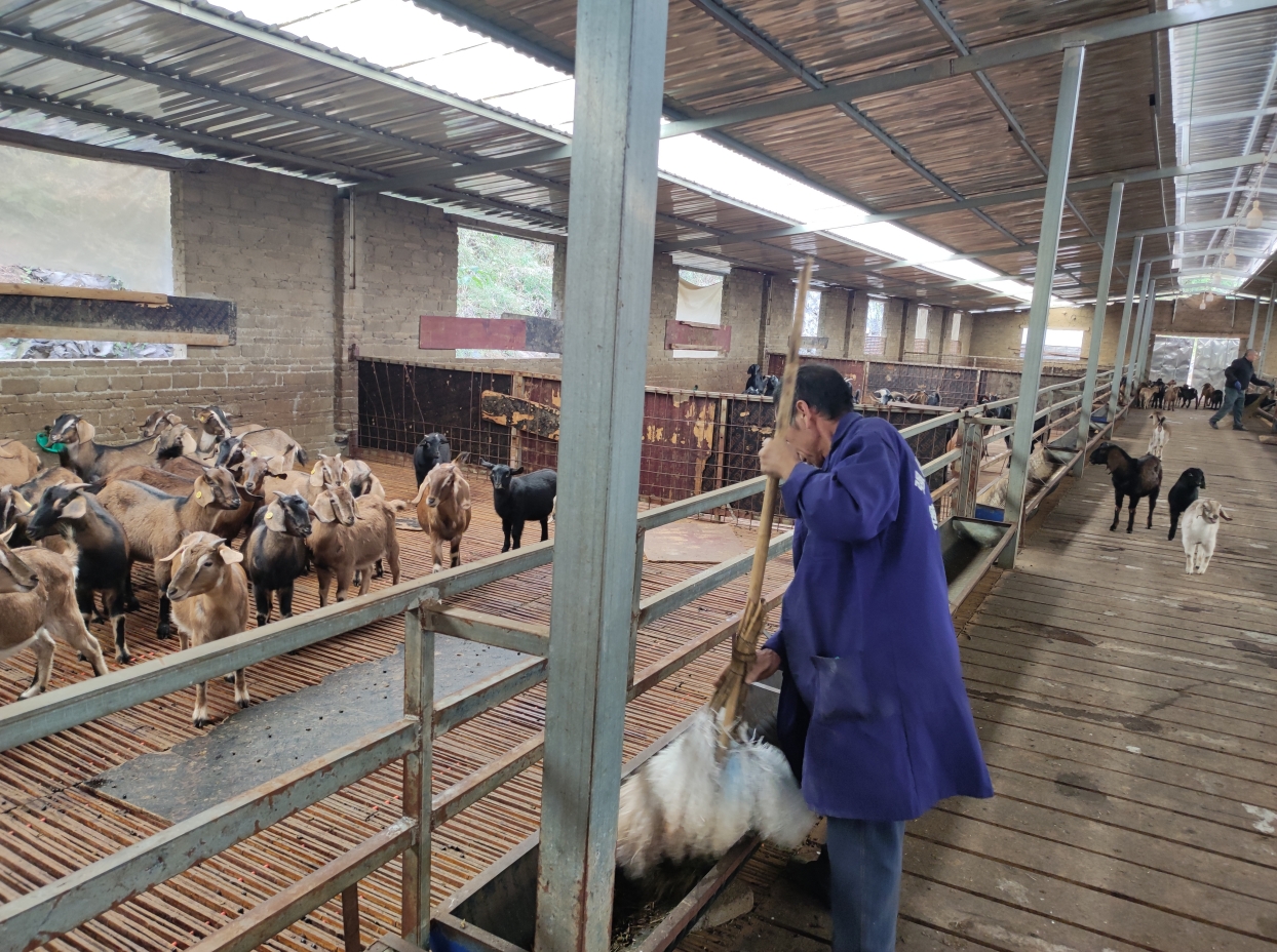 在马临街道庙坪村的贵州大松林养殖专业合作社,“咩咩”的羊叫声不绝于耳,饲养员正在给一只只膘肥体壮、毛色顺亮的黔北麻羊投喂饲料,忙得不亦乐乎。养殖大户雷小兵告诉记者,2019年他开始养殖羊300多只,目前养殖了1300多只羊,主要订单销往县里各羊肉馆和羊肉加工厂,市场供不应求。