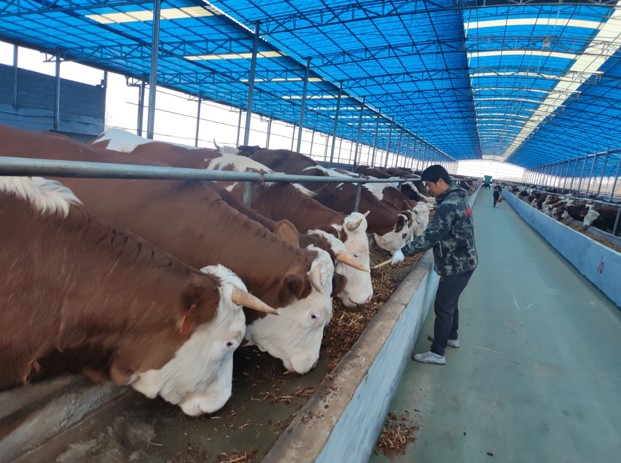 走进温水镇下坝村的华轩养殖场,只见院子里秸秆堆垛、酒糟成堆,牛舍里,饲养员正驾驶着撒料车将饲料倒入食槽,看见这些膘肥体壮的西门塔尔牛,养殖场负责人税建飞脸上笑开了花。温水镇下坝村的华轩养殖场