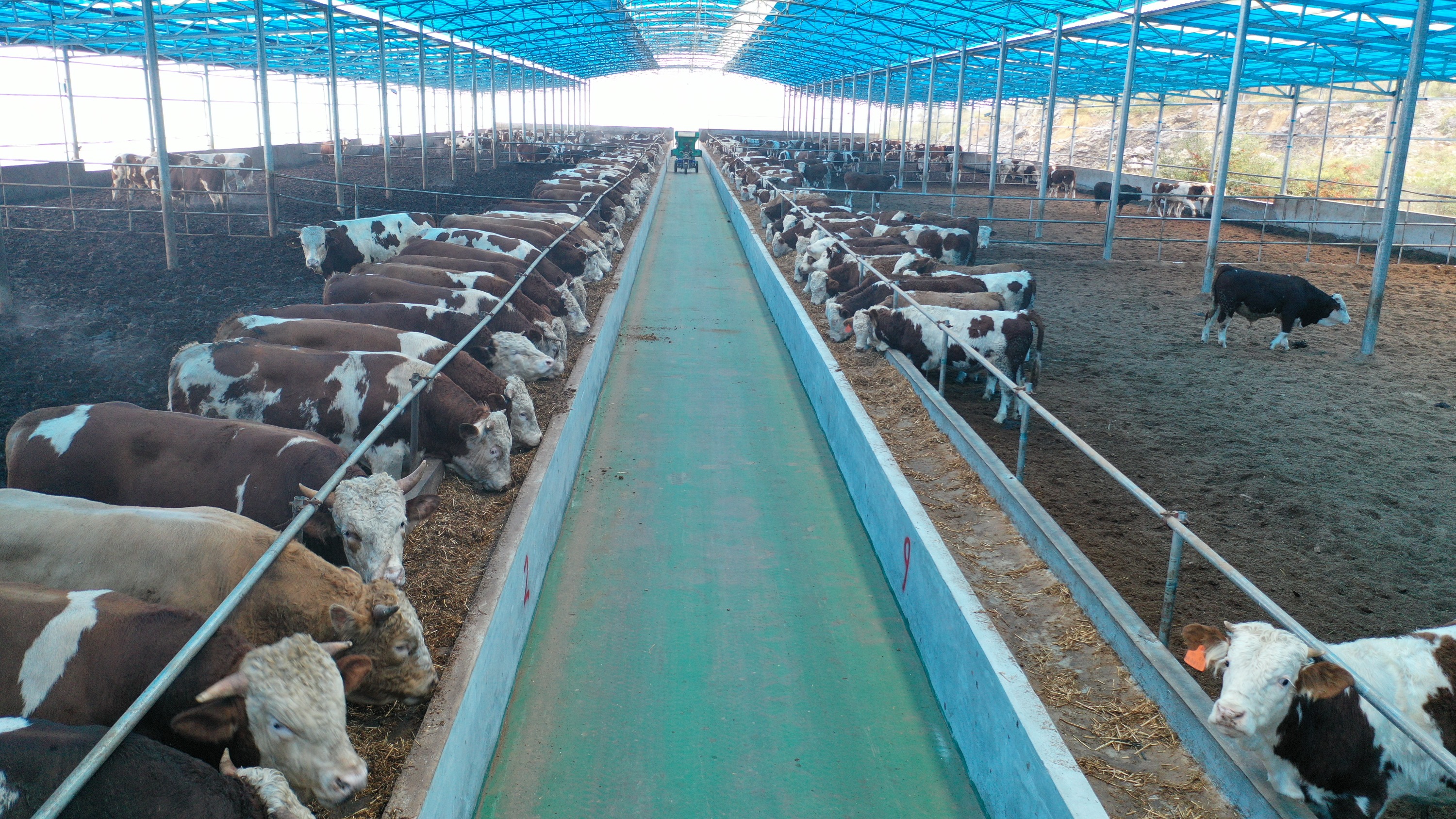 走进温水镇下坝村的华轩养殖场,只见院子里秸秆堆垛、酒糟成堆,牛舍里,饲养员正驾驶着撒料车将饲料倒入食槽,看见这些膘肥体壮的西门塔尔牛,养殖场负责人税建飞脸上笑开了花。温水镇下坝村的华轩养殖场