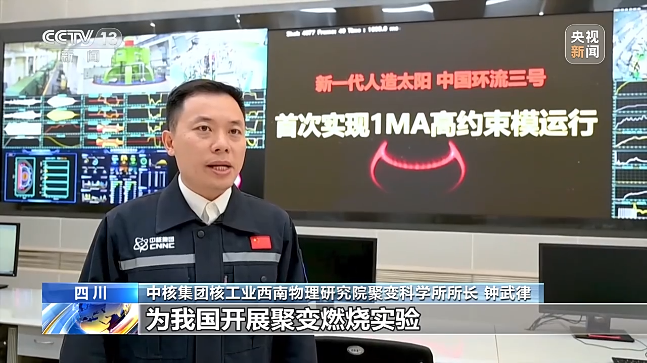 中核集团核工业西南物理研究院聚变科学所所长 钟武律:“中国环流三号”团队将进一步研究前沿聚变物理,为我国开展聚变燃烧实验、自主建造聚变堆奠定坚实基础。