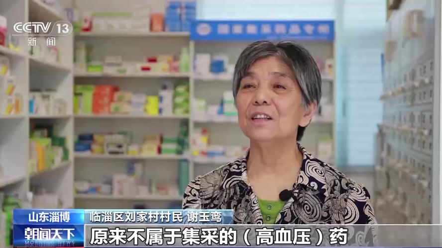 临淄区刘家村村民 谢玉鸾:原来不属于集采的高血压药,是27块多,现在一下子降到了7.1元,我很高兴,现在卫生室里随拿随有,我们也很方便。