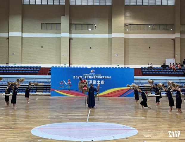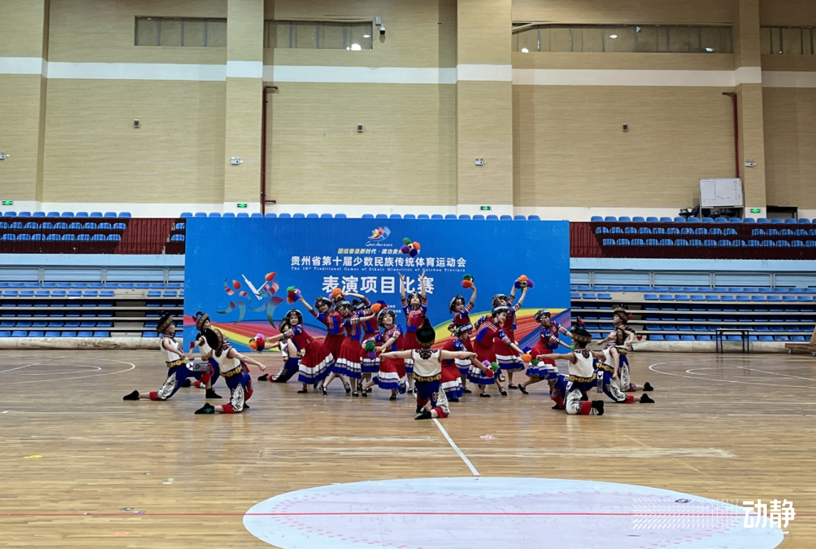 贵州省第十届少数民族传统体育运动会来到第二个比赛日,早上九点,表演项目的比赛在贵阳康养职业大学正式开赛。各代表团参赛选手身着不同民族服饰,依次上台演出,独特的《丰收龙》、欢乐的《布依族打手毽》、热闹的《彝山传情》……各类精彩节目让人目不暇接,选手举手投足间,充分展示了多样的民族风采。