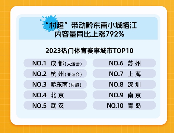 各类体育赛事带动不少目的地“起飞”。最引人注目的还要数黔东南州榕江县。作为民间赛事火爆全网的“村超”已成为今年的现象级事件,为城市体育IP带动文旅产业发展打开了新思路。报告显示,榕江相关内容量在马蜂窝平台同比上涨792%。