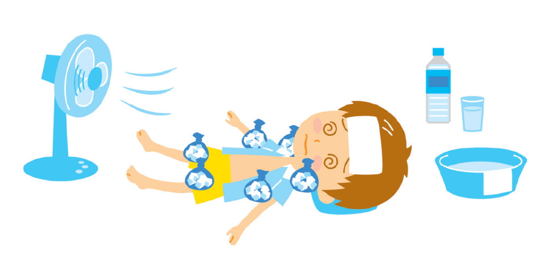 2. 无论使用何种方法,迅速给患者降温。如将患者浸泡在浴缸的凉水里;将患者放在凉水淋浴下;用浇花的凉水喷洒在患者身上;用凉水擦拭患者的身体;凉湿毛巾或冰袋冷敷头部、腋下及大腿根部;天气干燥时,将患者裹在凉水浸湿的单子或衣物里用风扇猛吹。