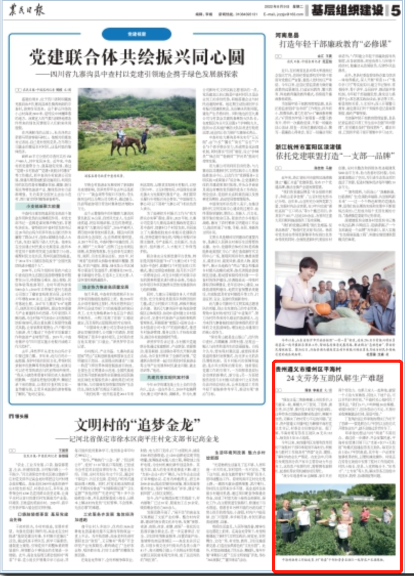印承俊的想法与村“两委”不谋而合。通过进一步调研、开会征集民意,平海村在党建引领下以“支部+农户+互助组”的模式组建起劳务互助队,每支队伍由3至6户村民组成,其中有一户必须有旋耕机等农机,以便机械化操作。村里还在劳务互助组中安排了驻村工作组成员、村民小组长、党员、入党积极分子、“田秀才”“土专家”等人员,解决劳务互助组中的技术、物资、协调调度等问题。