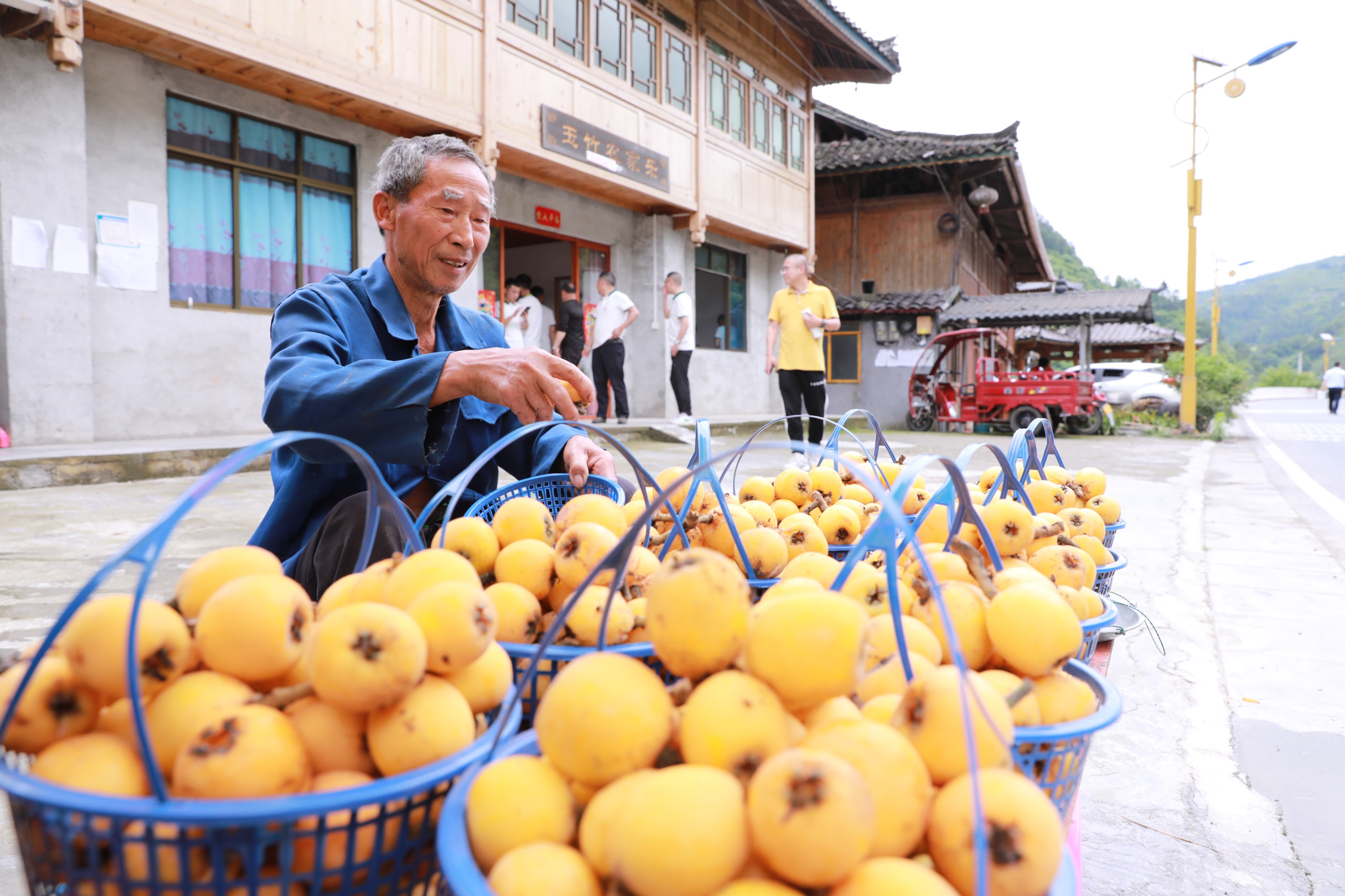 “寨上几乎每家每户都有水果,一到水果成熟的时候,我们全部摘到家门口来卖,由于交通比较方便,这十多天,我也卖了两千多块钱了”。看着丰收的枇杷,果农吴志娇喜笑颜开。