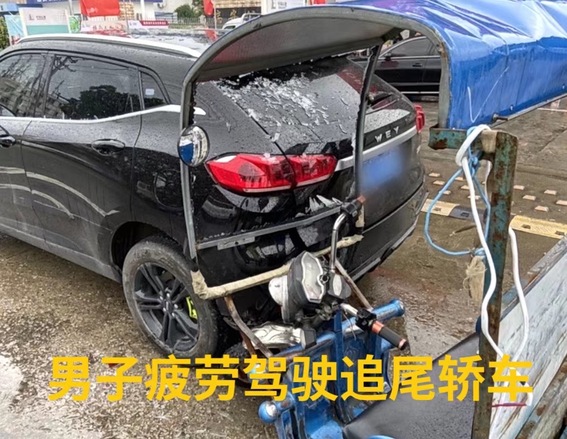 因疲劳驾驶操作不当,追尾路边一轿车