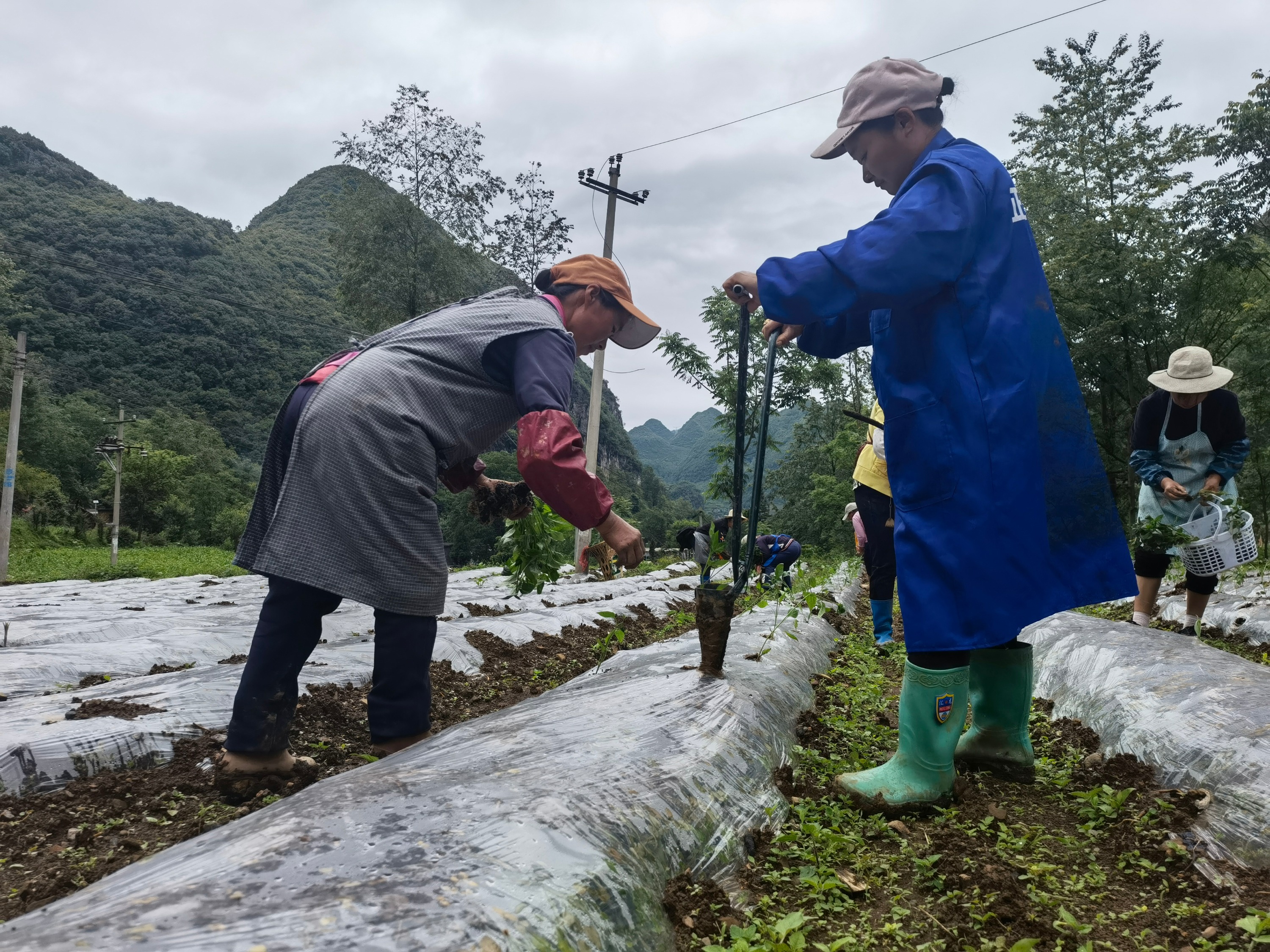 近日,记者在水城区野钟乡响石村村民陈家发家的田地里看到,十几名村民正在地里忙碌着,打孔、放苗、覆土、浇水……大家分工有序、配合密切,有条不紊地进行辣椒苗移栽。