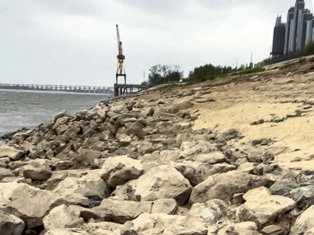 越过江堤和礁石,大叔和吴宇