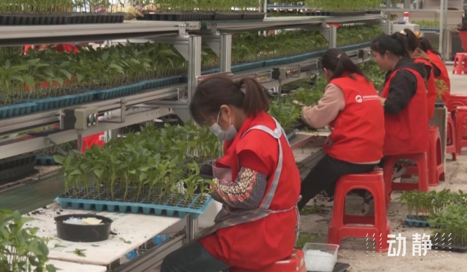 在位于开阳县楠木渡镇的种苗繁育中心大棚内,工人正忙着给辣椒苗扒土、嫁接、摆盘,育苗嫁接工作有条不紊地进行。