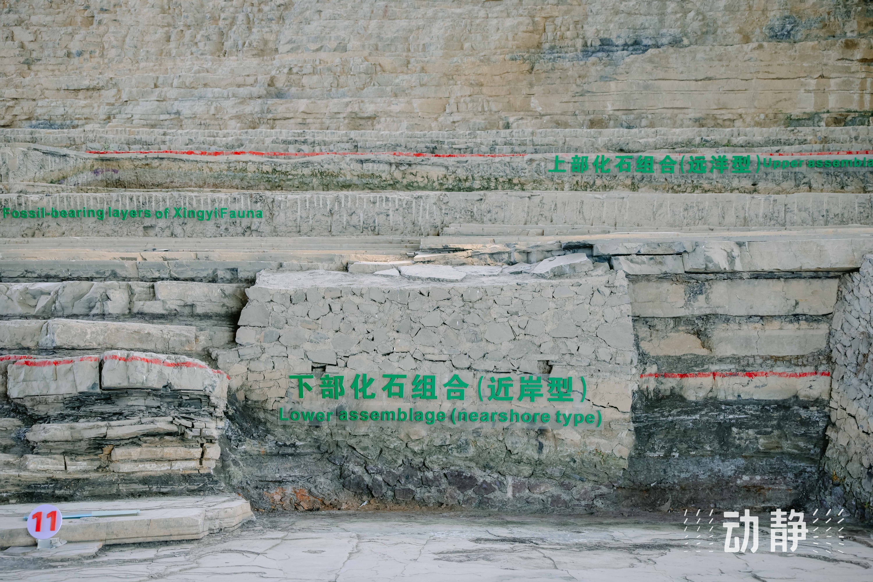 作为兴义地质公园的另一组成部分,贵州龙化石原位保护馆位于兴义市乌沙镇泥麦古村,由原位地层剖面和化石发掘场地、周围表层岩溶现象以及科普长廊组成,总面积约12万平方米,是研究三叠纪海生爬行动物化石起源的中心。这里展示的是化石挖掘抛面,是全球唯一一个包含了从近岸到远洋的三叠纪海洋生物化石产地。