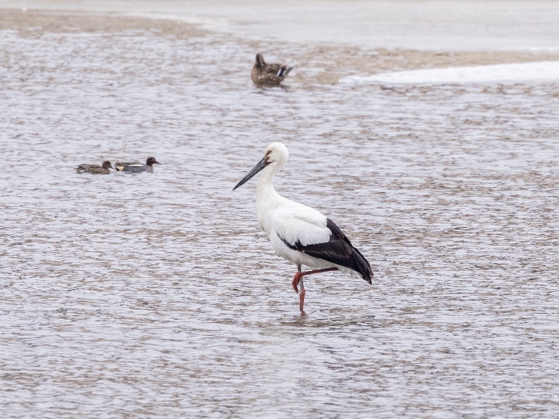 2024年3月11日,甘孜州色达县摄影家协会摄影师秋吉洛珠在甘孜州色达县色柯镇果根塘湿地公园拍摄黄鸭时,惊喜地发现两只国家一级保护动物——东方白鹳。